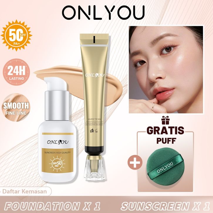 【BPOM】ONLYOU Concealer Waterproof Foundation & onlyou Sunscreen SPF50+ Sunscreen Face & Body sunblock make up sepaket