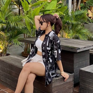 (Gratis Ongkir) Kemeja Pria Hawai/ Kemeja Pantai Abstrak Vintage Casual Lengan Pendek Retro Bahan Rayon Viscose import