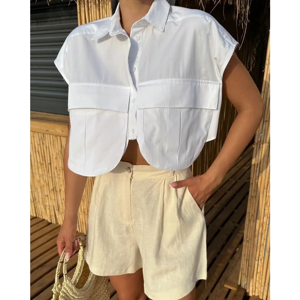 Outfit - Bolala Crop Top Bloused Korean Atasan Shirt Sleeve Less Remaja Wanita Premium