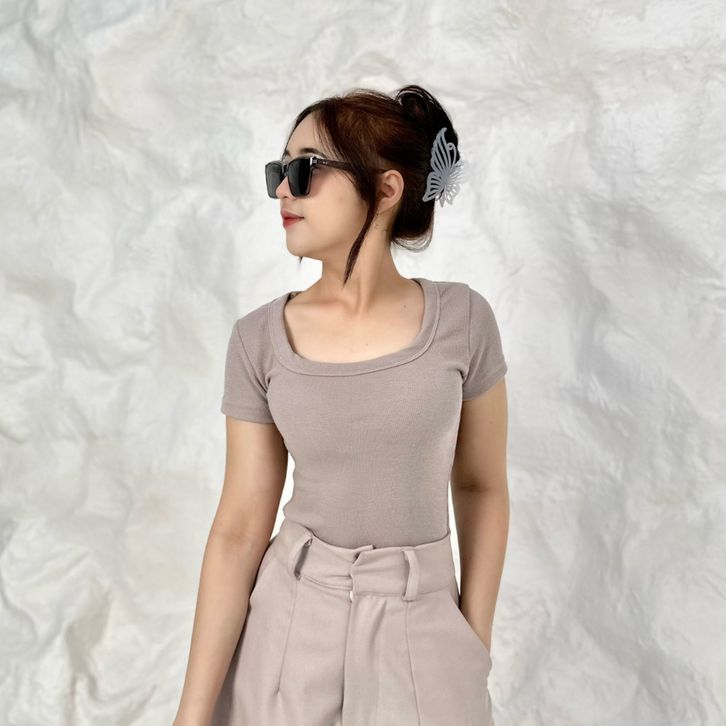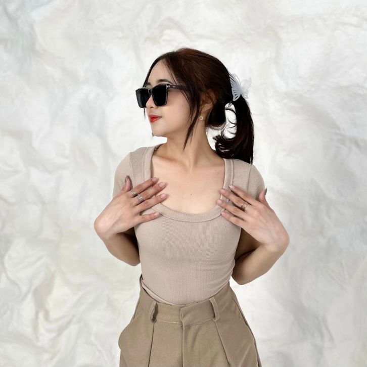 Crop Top Wanita Lembut Korea Up Korean Style Lengan Pendek Jumbo Bodyfit Panjang Serut Uneck Aqilla AIJO Gratis Ongkir