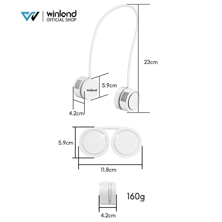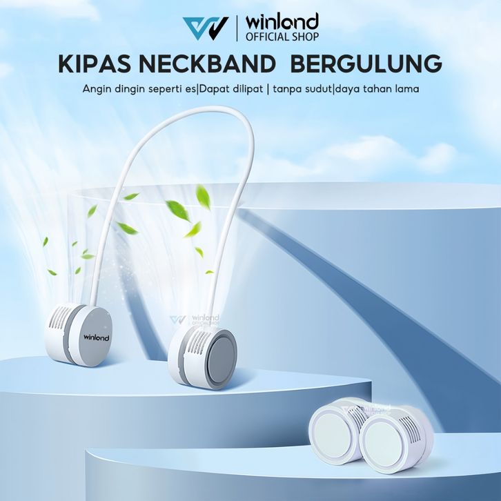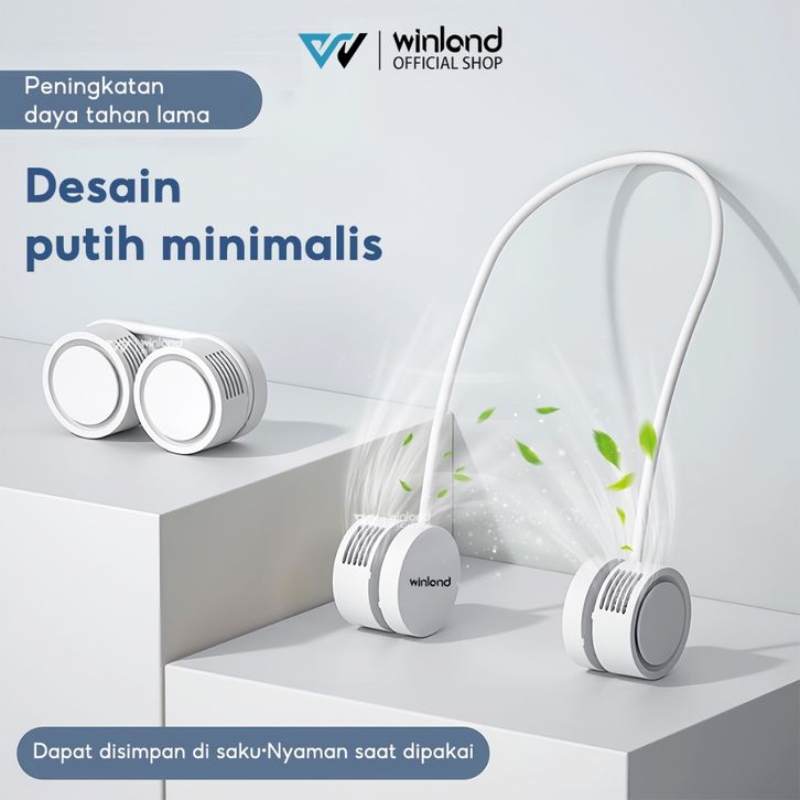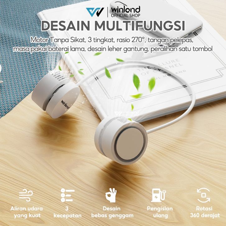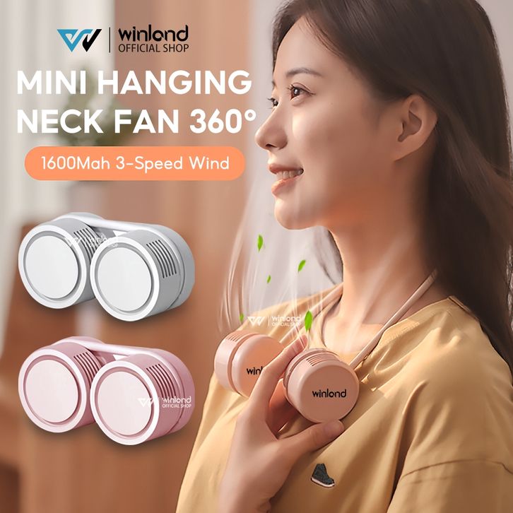 Kipas Angin Leher Winland Portable Mini Hanging Neck Elektrik Fan Rechargeable
