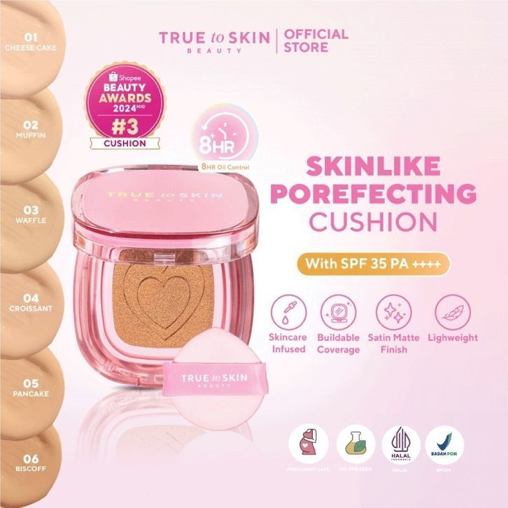 True to Skin - Skinlike Porefecting Cushion SPF 35 PA++++ Medium to High Coverage Satin Matte Finish Lightweight Tidak