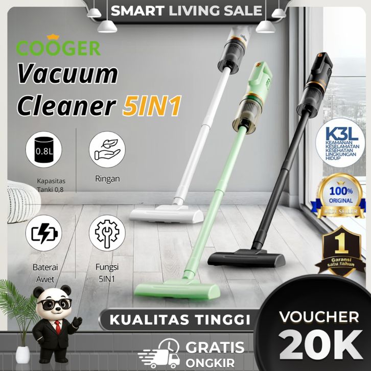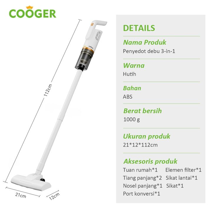 Vacum Cleaner 5IN1 Vacuum Lantai Penyedot Debu 5IN1 Dengan Gagang Panjang Hijau Alat Penyedot Debu Serbaguna - COOGER