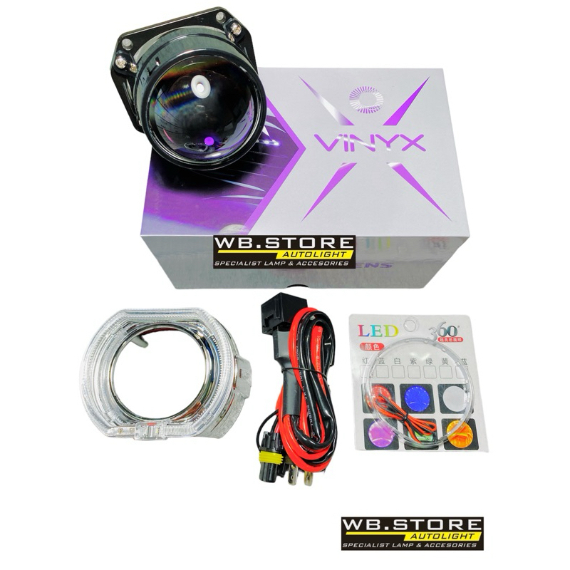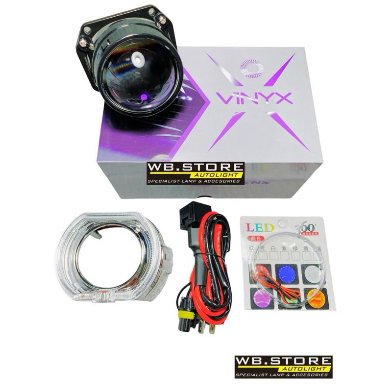 Combo Paket Lengkap Projector Biled Vinyx P3 P25 Jauh Dekat Flat Cut 2.5 Inch Purple Lens Vinyx P3 50 Watt Biled P3
