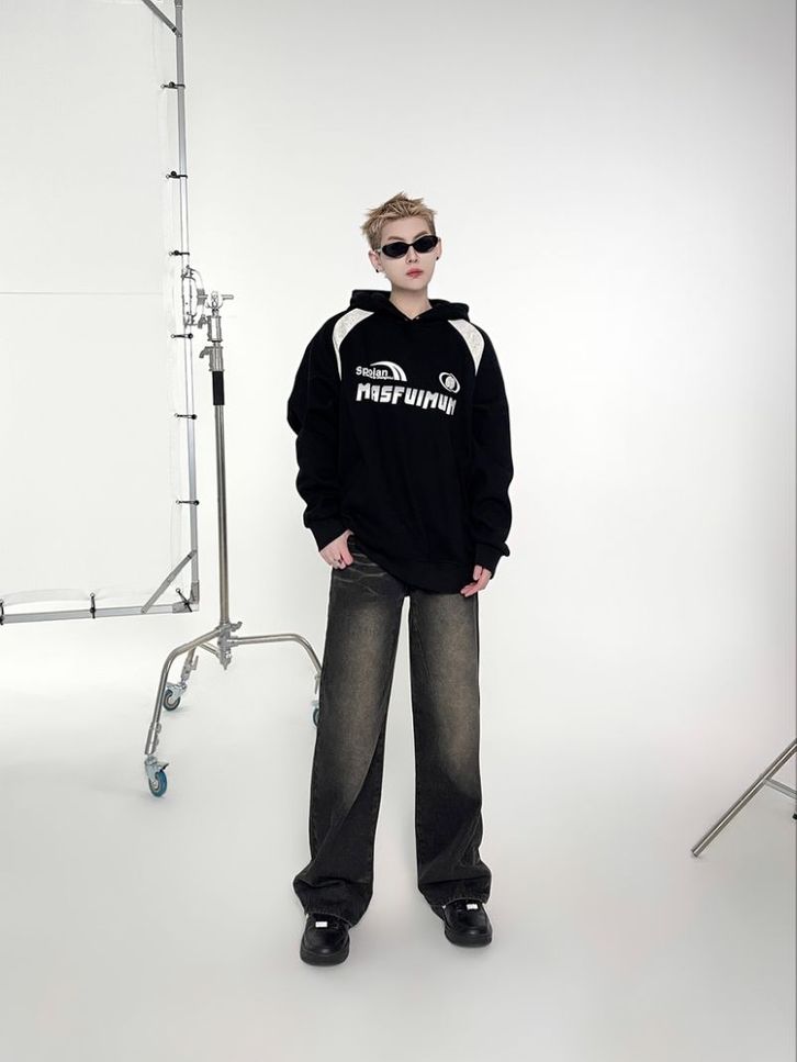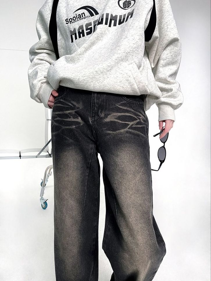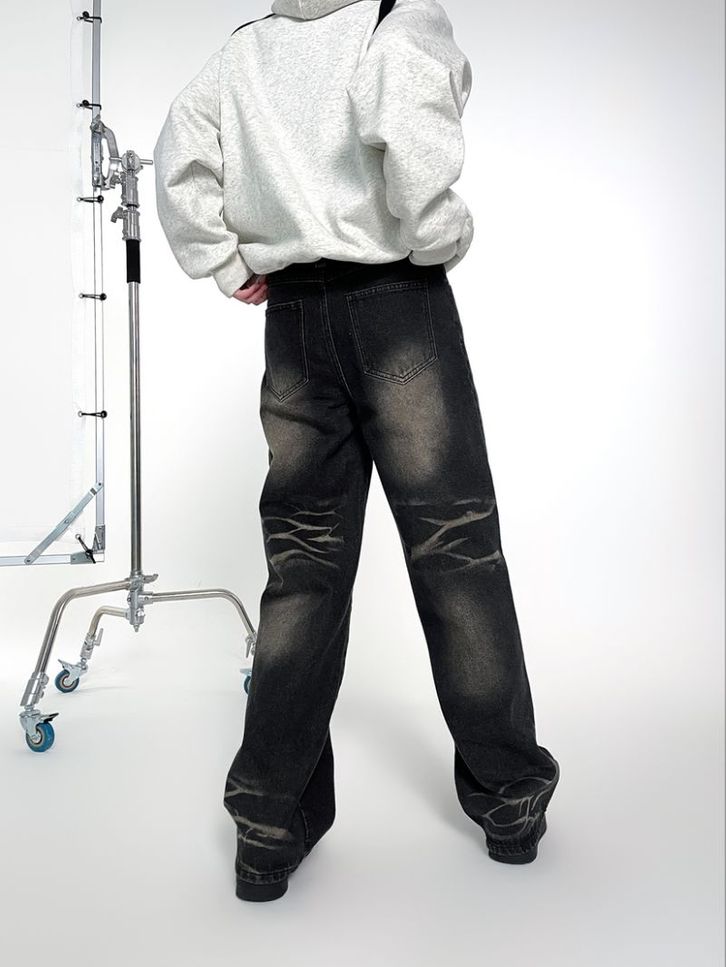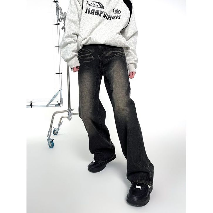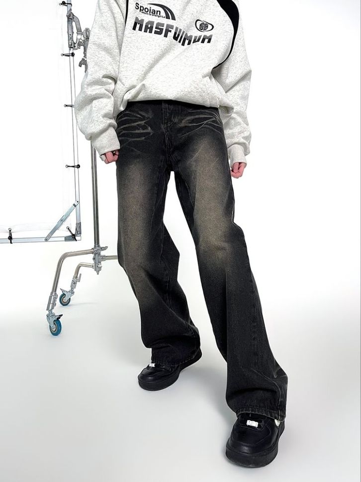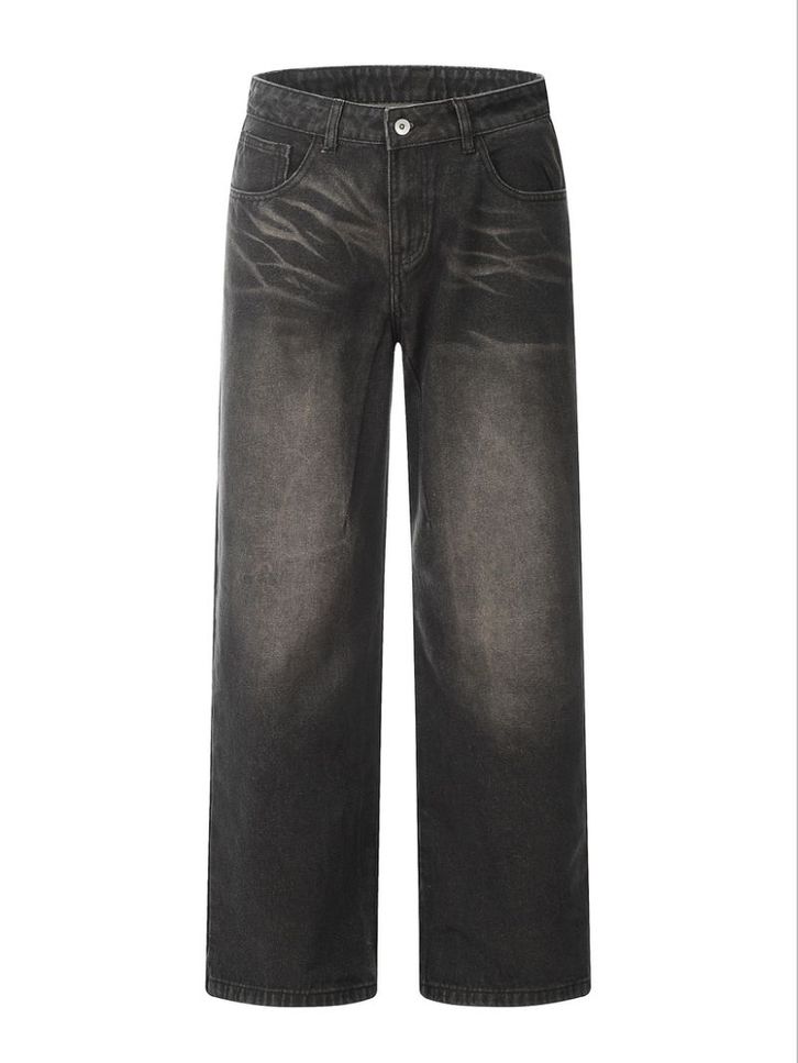 GOODTROUSER - CELANA JEANS LOOSE PRIA STRETCH WASH WIDE STRAIGHT DENIM JEANS NR4537 BLACK WASH