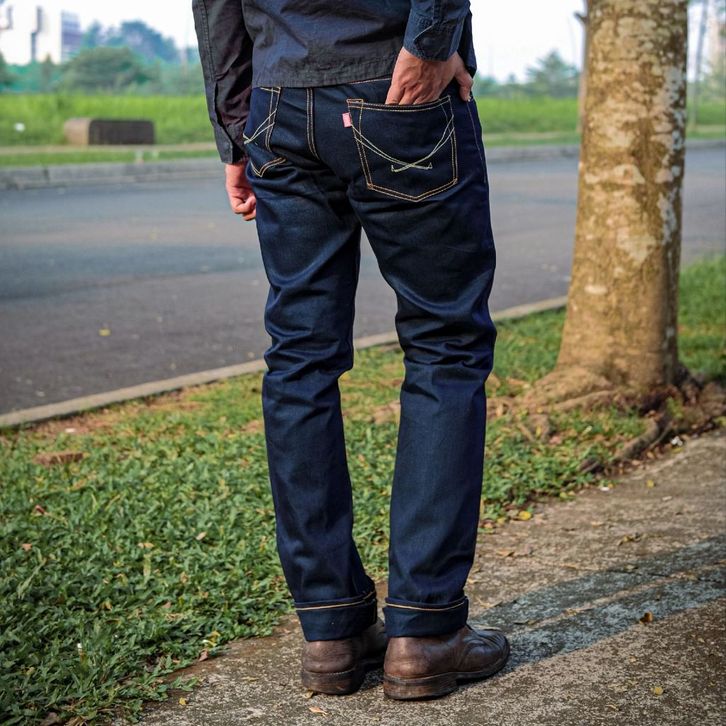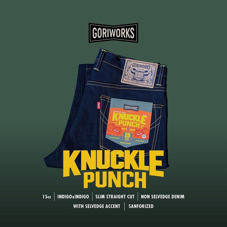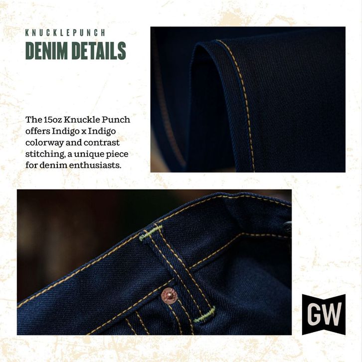 GORI WORKS DENIM PUNCH 15 OZ INDIGO X INDIGO - RAW DENIM WITH SELVEDGE ACCENT