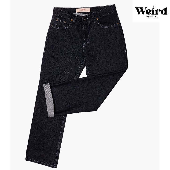 WEIRD DENIM CELANA PANJANG JEANS SELVEDGE SHELLSTITCH 15 OZ ACCENT BLACK INDIGO FLAME ART