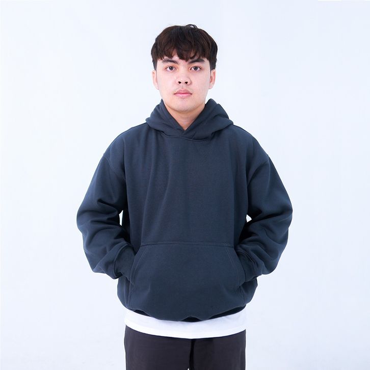 Hoodie Boxy Oversize Dark Grey Pria Wanita Cotton Fleece Tebal