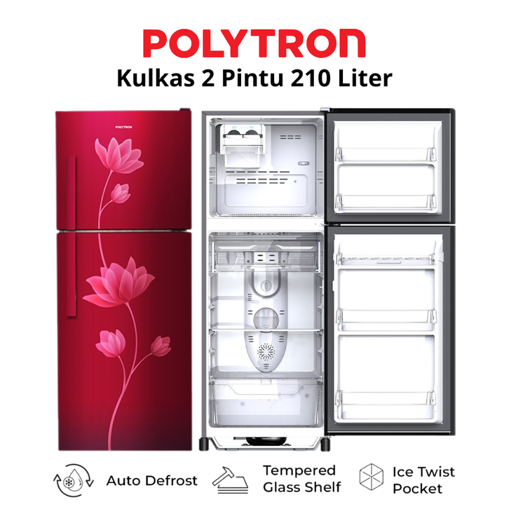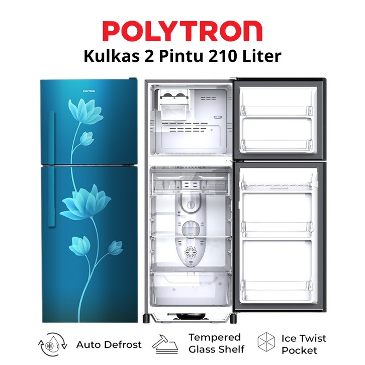 KULKAS POLYTRON 2 PINTU BEAUTY METAL 210 LITER PRM 219 1 LEMARI PENDINGIN TANPA BUNGA ES FREEZER JUMBO MURAH