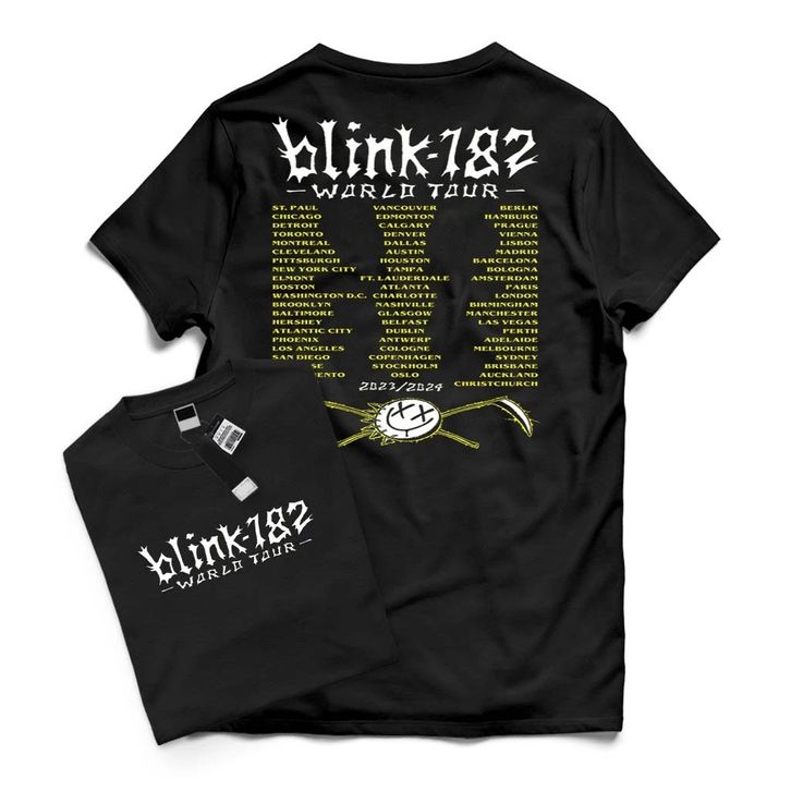 KAOS BLINK 182 WORLD TOUR HITAM PREMIUM TSHIRT PRIA WANITA