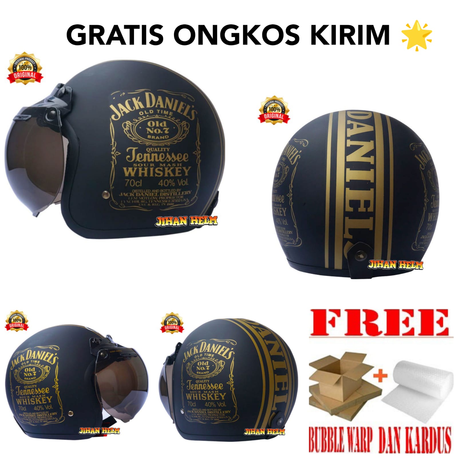 Helm Bogo / Helm Retro Bogo Jm Jack Daniels Black Doff Termurah
