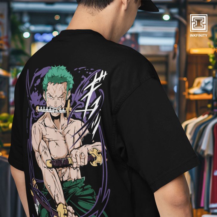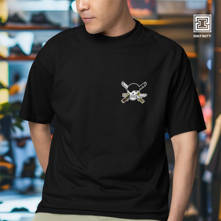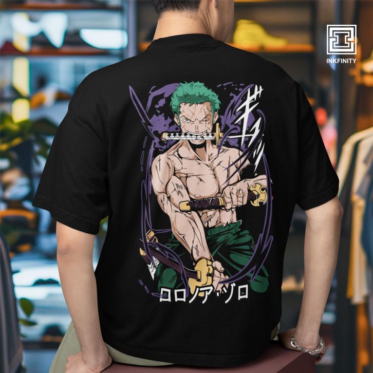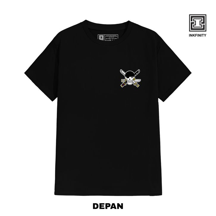 Kaos Anime One Piece Roronoa Zoro V1 Pria Lengan Pendek Cotton Combed 30s INKFINITY Hitam Casual