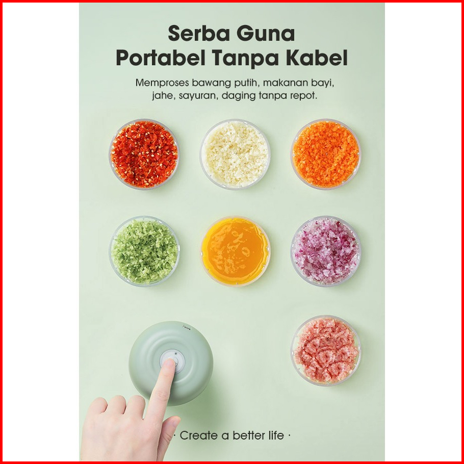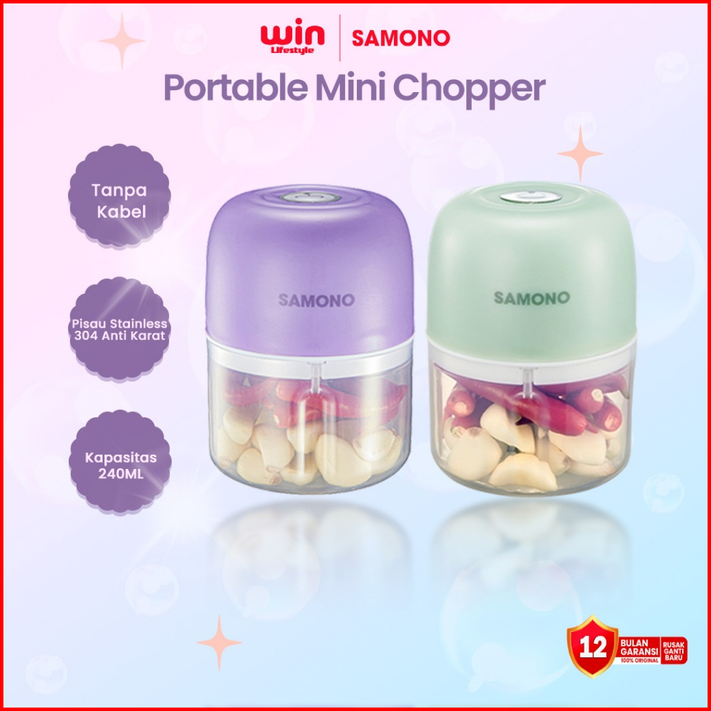 Samono Mini Chopper Portable 250ml Serbaguna Tanpa Kabel Penghalus Bumbu Dan Penggiling Daging Pengisian Usb Type C Sw L