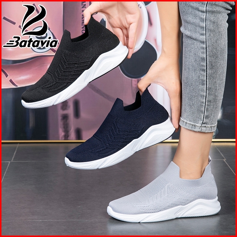Batavia Sepatu Slip On Tuker Sepatu Wanita Anyaman Terbang Sepatu Joging Sepatu Wanita Dewasa N33