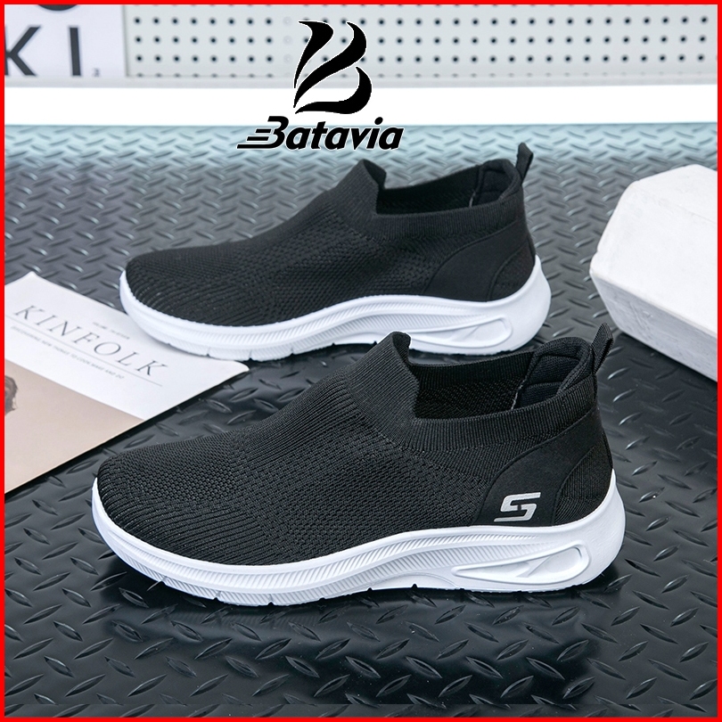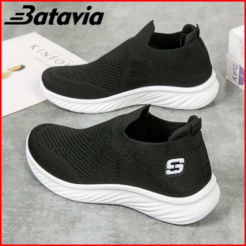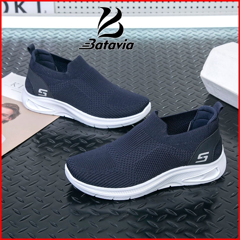 Batavia Grosir Sepatu Pria Dan Wanita Rajutan Gaya Yang Sama Tanpa Tali Sepatu Olahraga B58