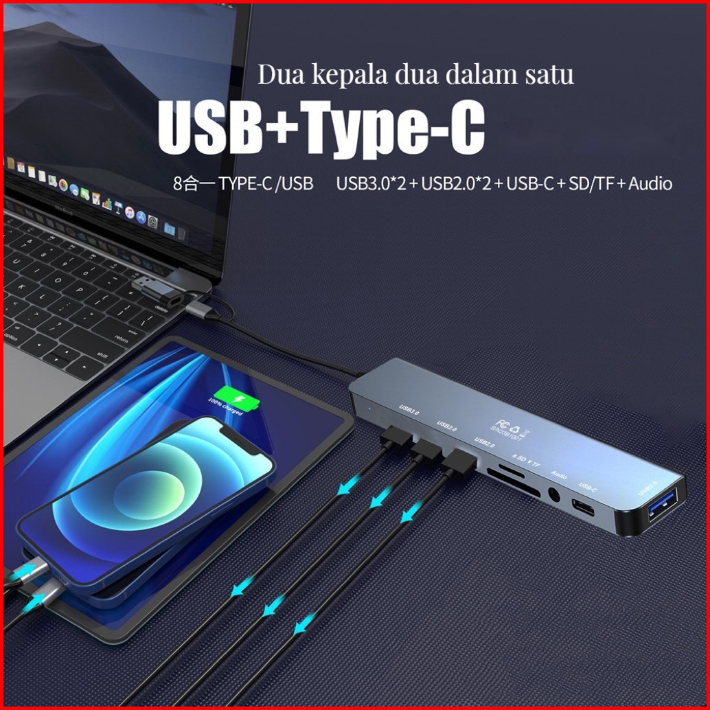 Mayy Id 8 In 1 Usb Hub 3.0 Type C Ke Usb Adapter Pasang Dan Mainkan Type C Ke Usb 3.0 Hdmi Pd 8 In 1 Mm