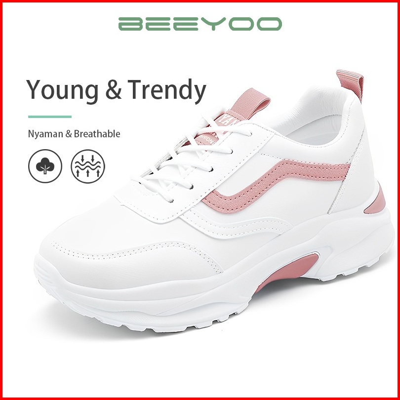 Beeyoo Sepatu Sneakers Wanita Sport Shoes Kets Casual Sepatu Olahraga Korea Young Trendy Wd114