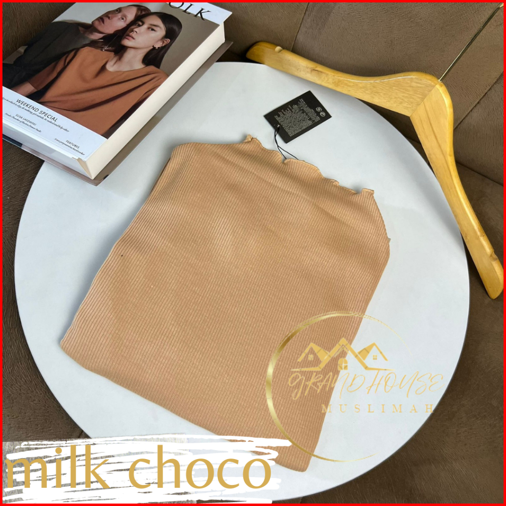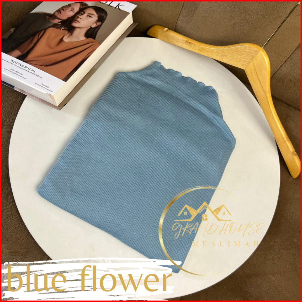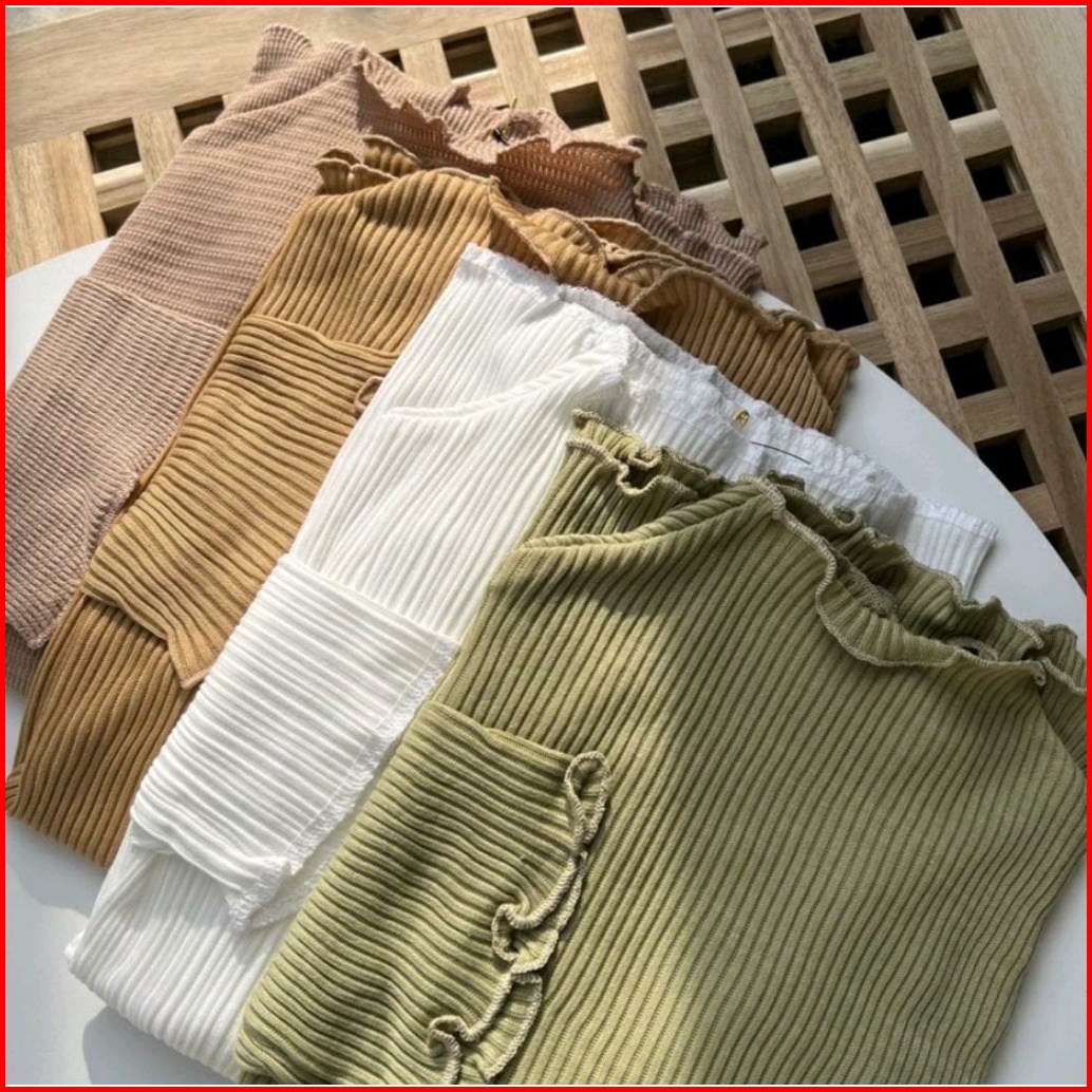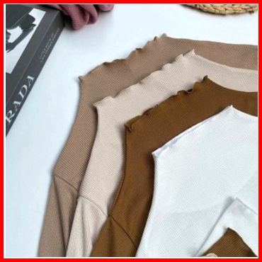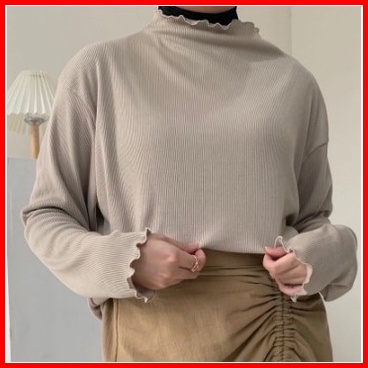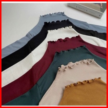 Premium Inner Rajut Ruffle Turtleneck Rib Lengan Panjang Wanita