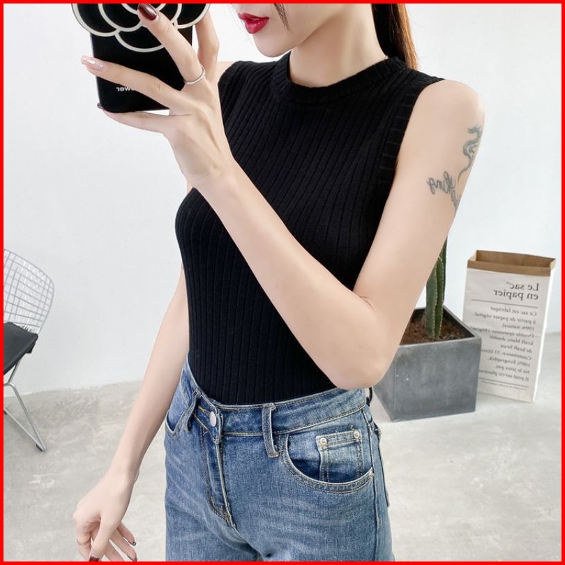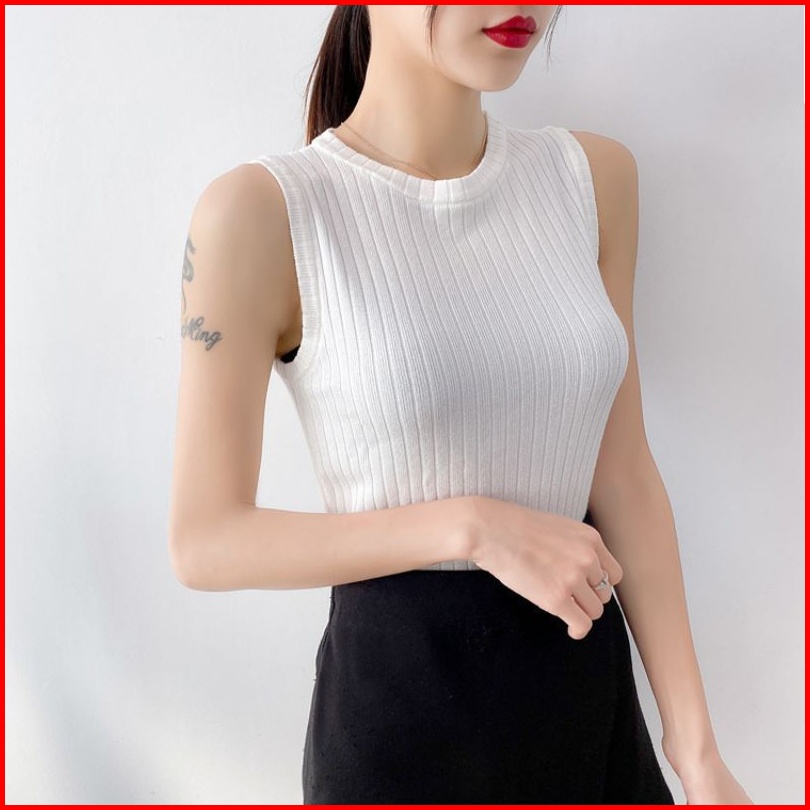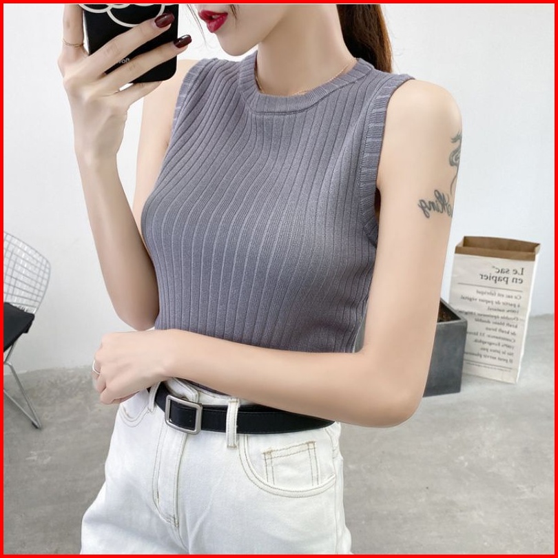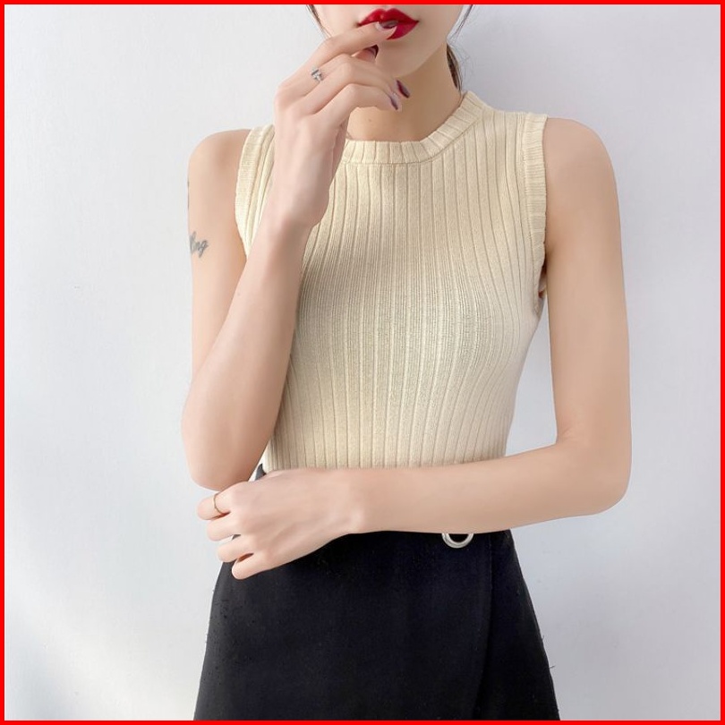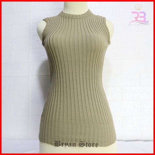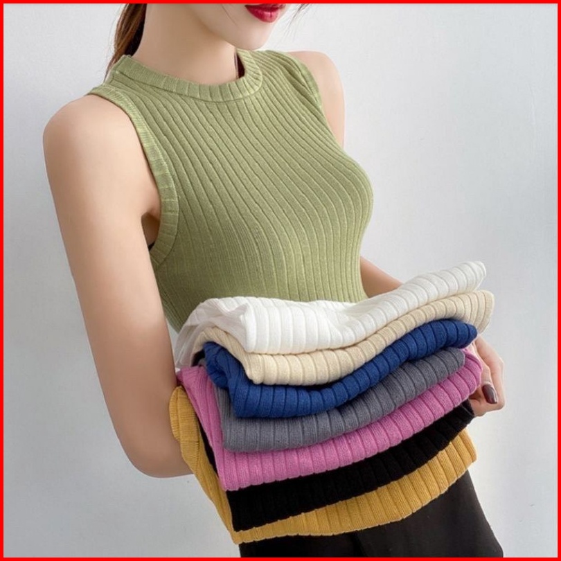Tanktop Rajut Knit Atasan Singlet Wanita Korea Tank Top Polos Teng Top Buntung