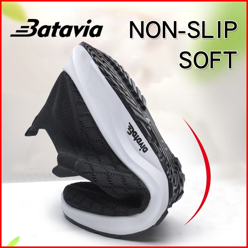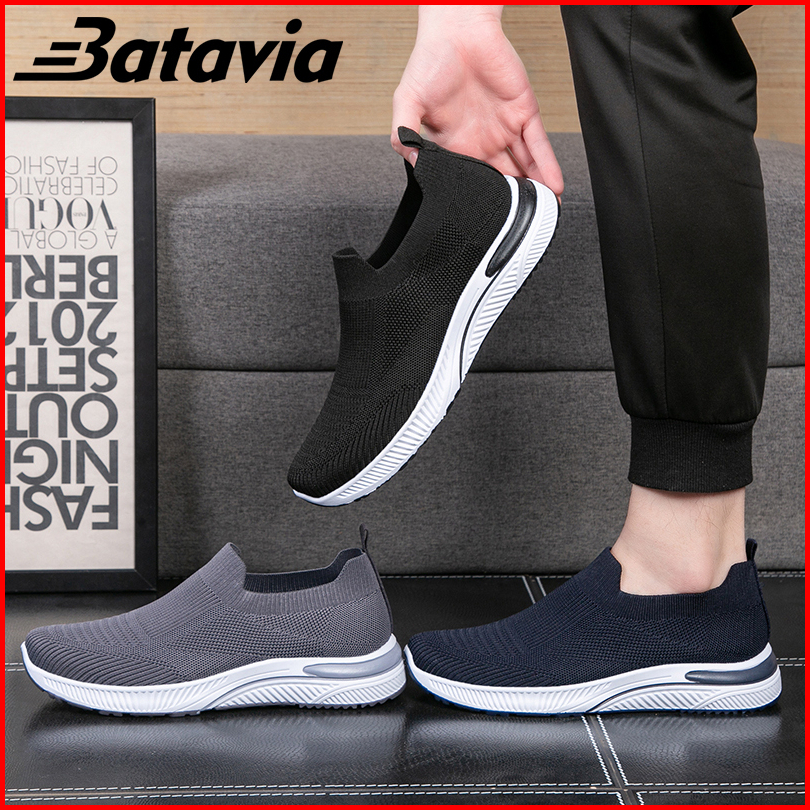 Batavia Sepatu Pria Ultra Ringan Hitam Slip-on Senior Sepatu Kasual Kets Sol Lembut Sepatu Men J