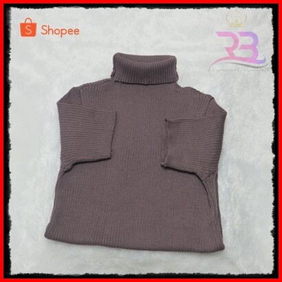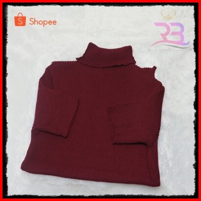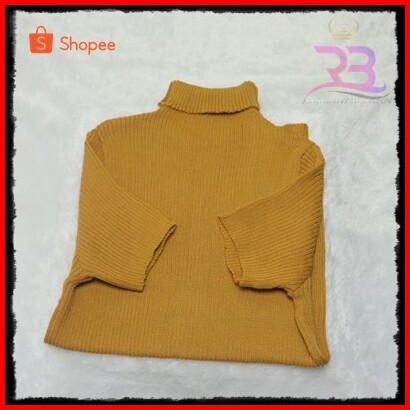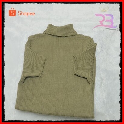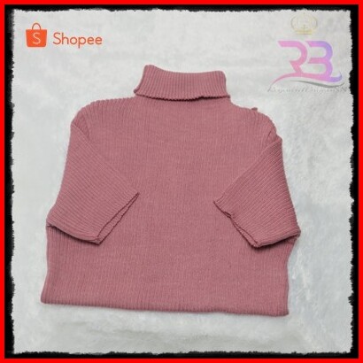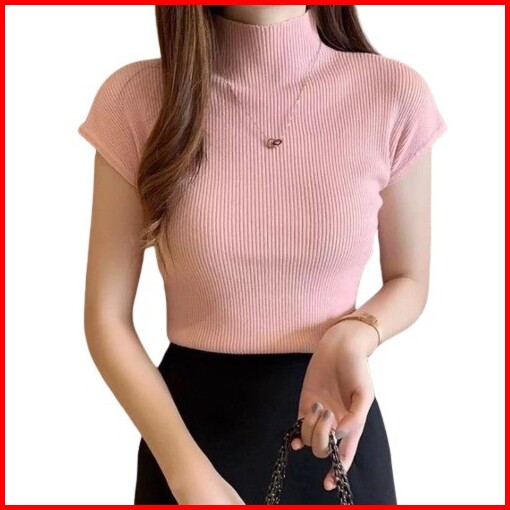 Atasan Rajut Wanita Turtleneck Kerah Tinggi Lengan Pendek Turtleneck Polos Turte Neck Rajut