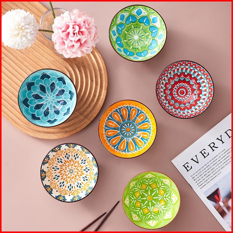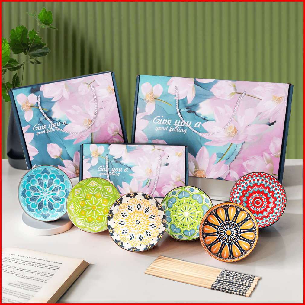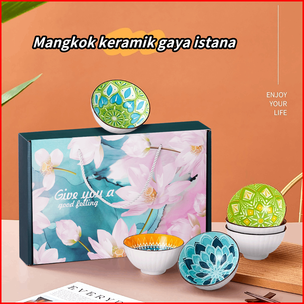 Sni Homestuff Mangkok Set Premium Motif Warna-warni Hampers Mangkok Souvenir Hadiah Mangkok Set Gaya Istana Garansi