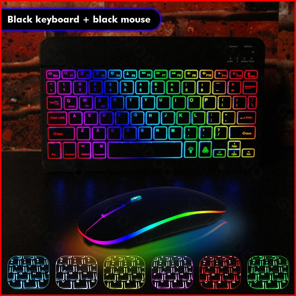 10 Inch Backlit Backlight Wireless Keyboard And Mouse Led Colorful Bluetooth Keyboard For Ipad Laptop Android Iphone