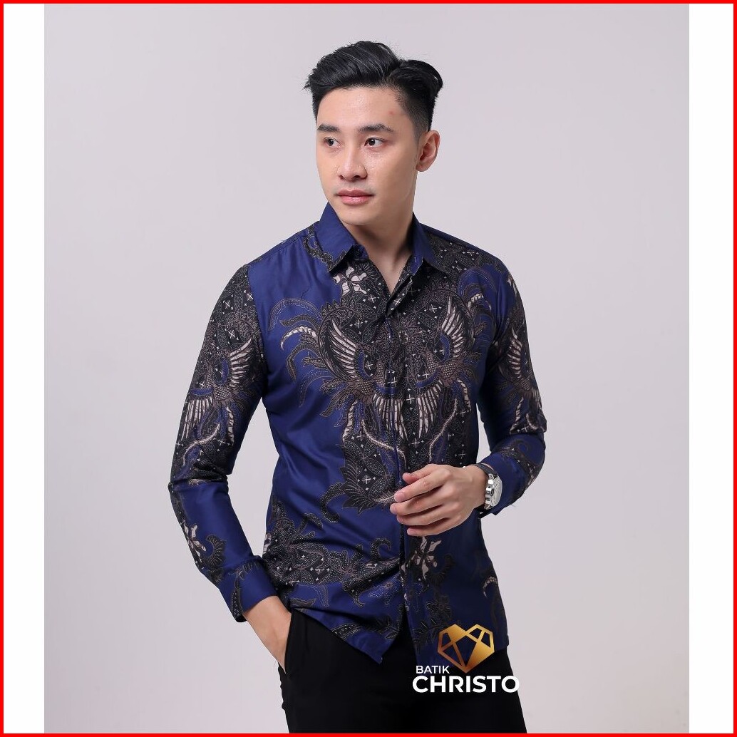 Kemeja Batik Pria Baju Lengan Panjang Slimfit Lapis Furing Batik Christo Kode 1056 Katun Premium Elegan Motif Formal War