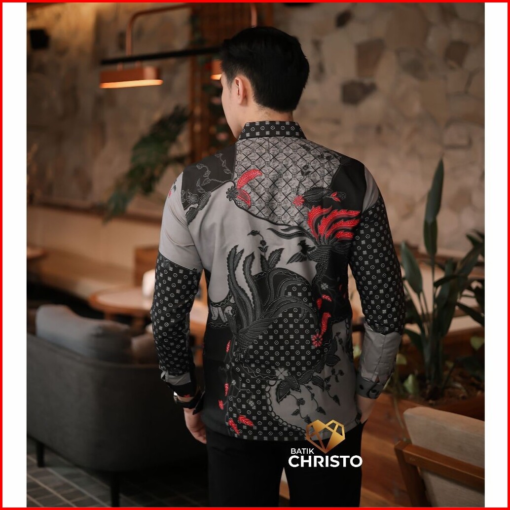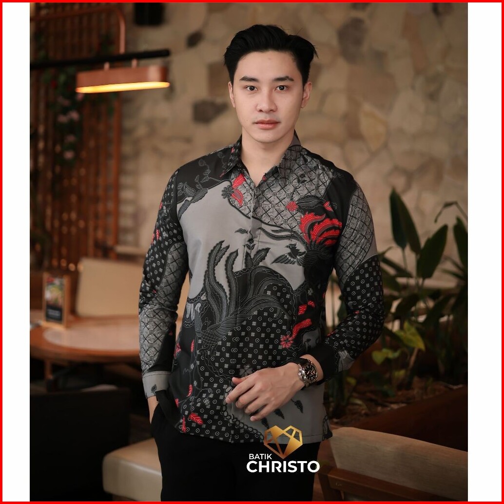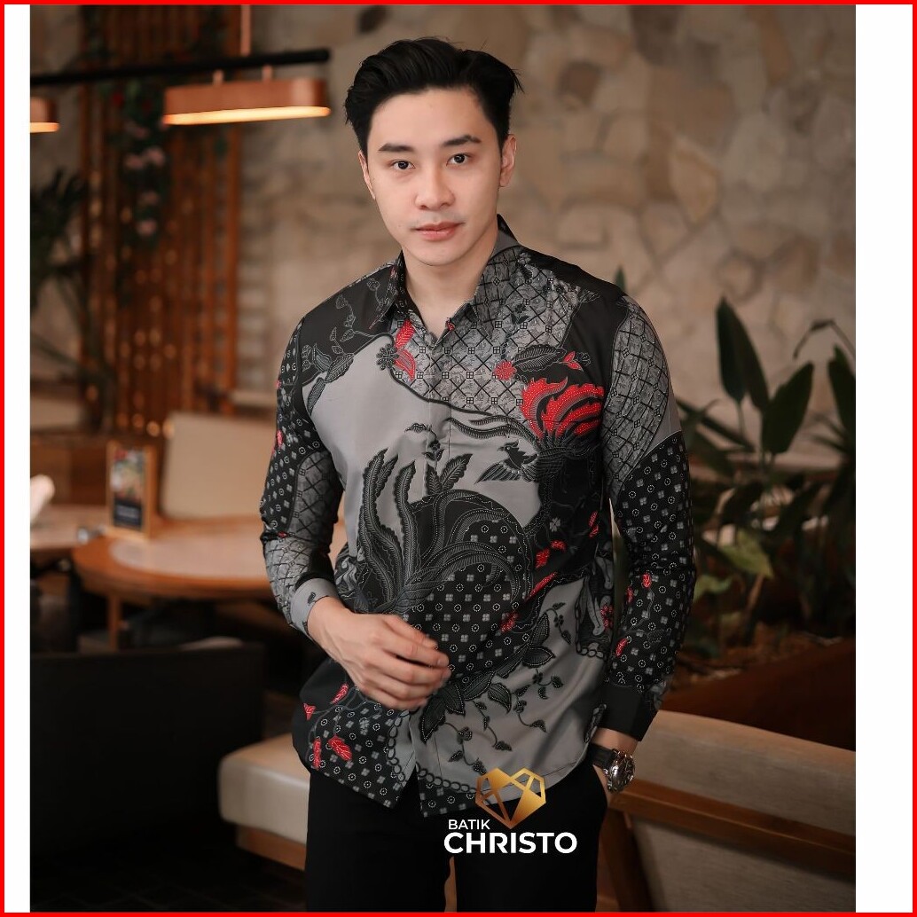 Kemeja Batik Pria Baju Lengan Panjang Slimfit Lapis Furing Batik Christo 0107 Bahan Katun Premium Elegan Motif Formal