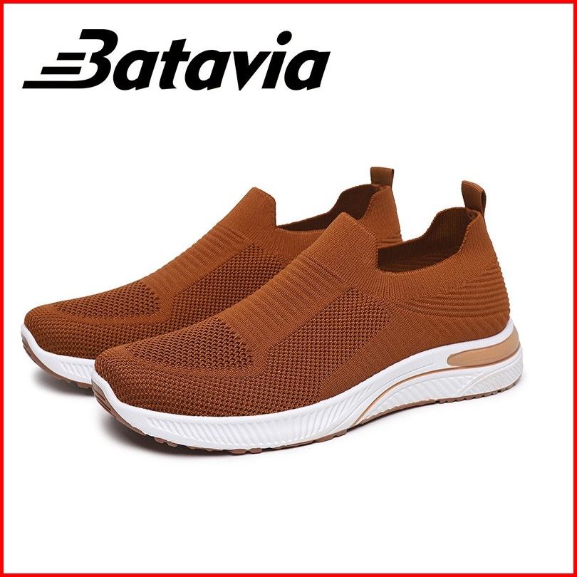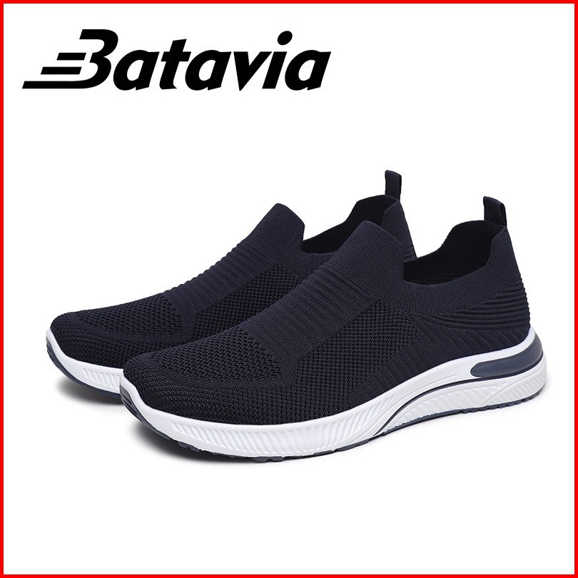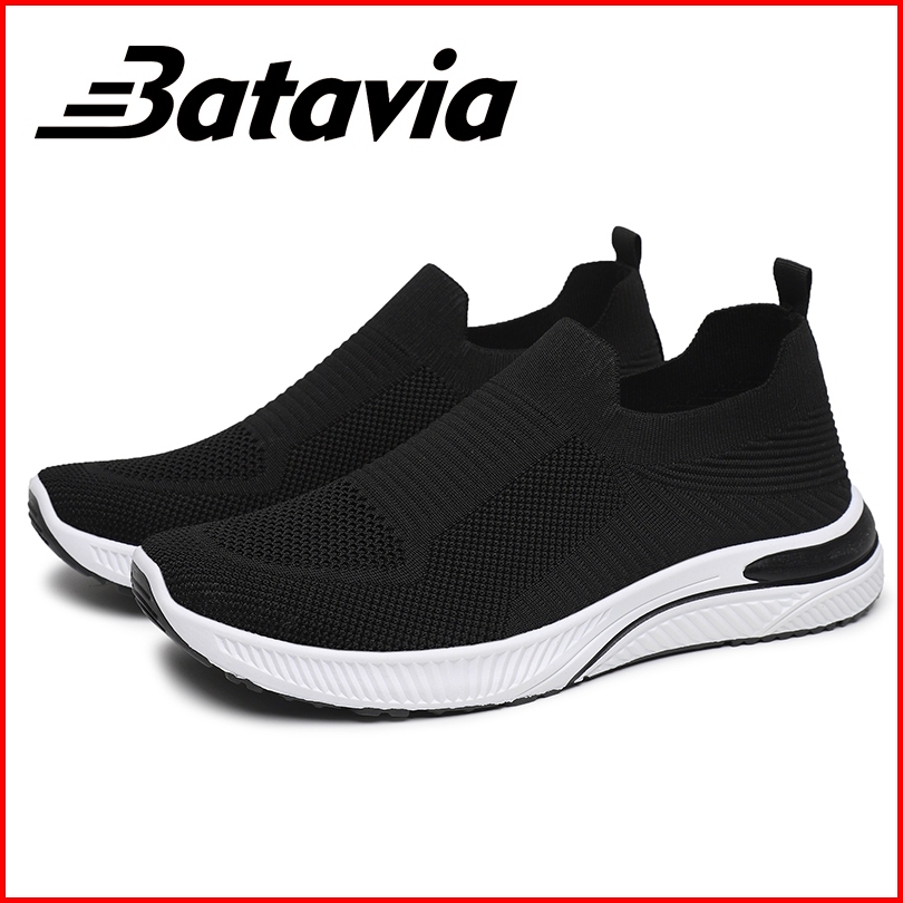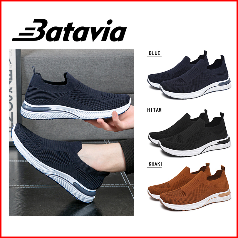 Batavia Grosir Sepatu Kanvas Pria Rajut Sepatu Tanpa Tali Hitam Sepatu Cowo Pria Ringan B20
