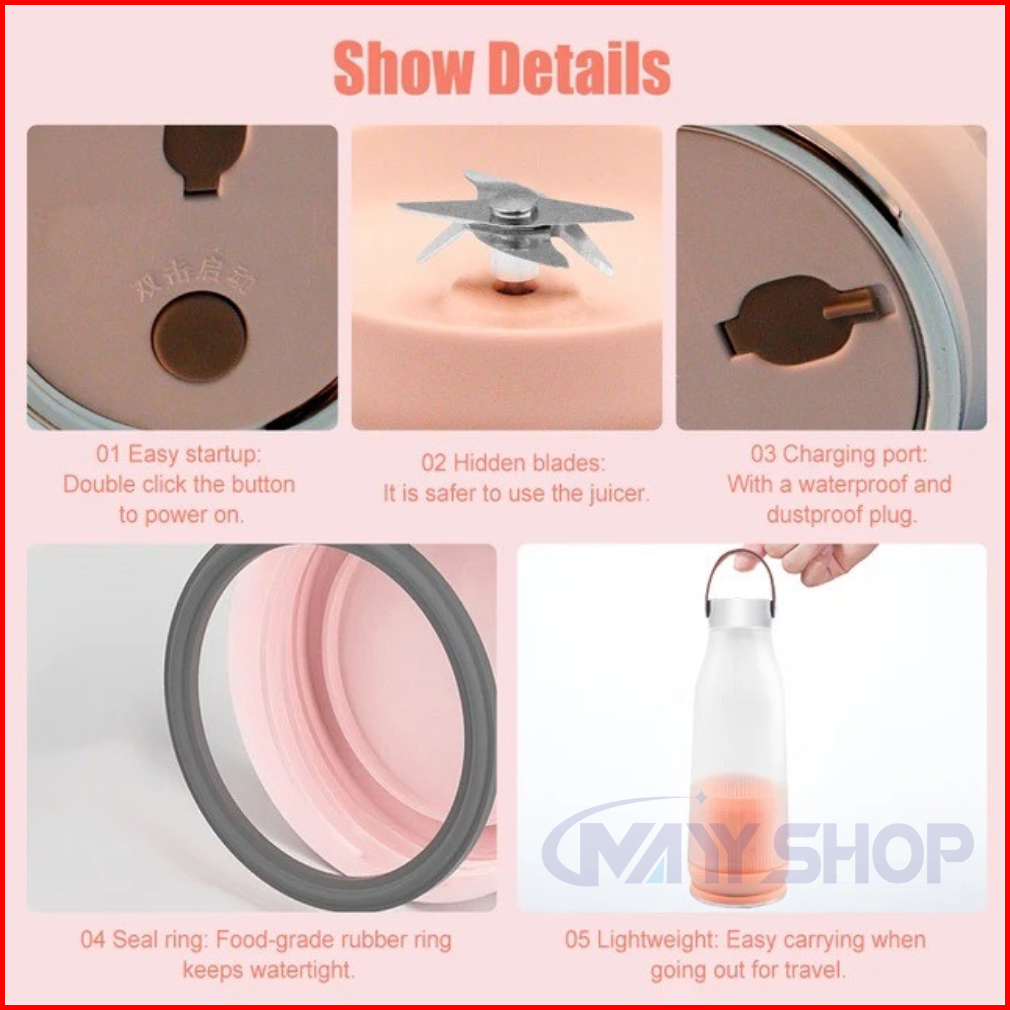 Mayy Id Juice Blender Portable Kekuatan Tinggi 6 Pisau Juicer Botol Blender Kapsul Blender Jus Buah Milkshake Rechargeab