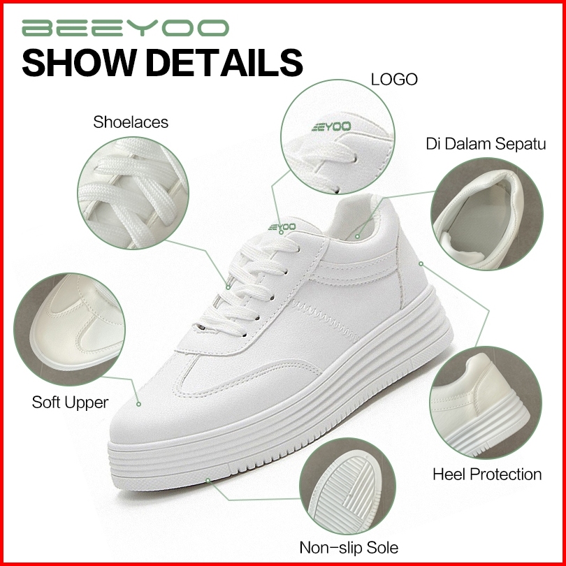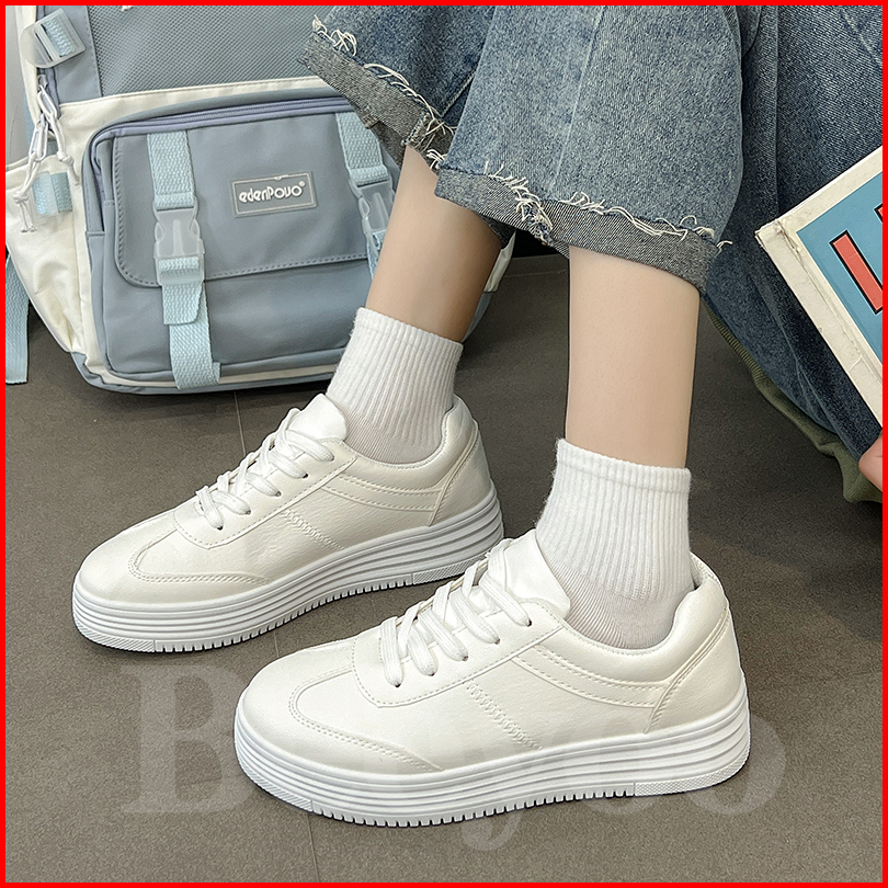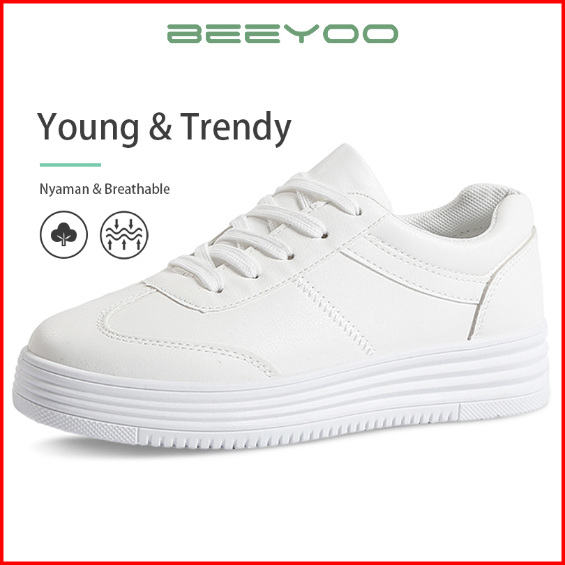 Beeyoo Sepatu Sneakers Wanita Tali Sepatu Olahraga Ringan Model Fashion Shoes Putih Wk103