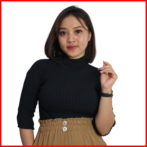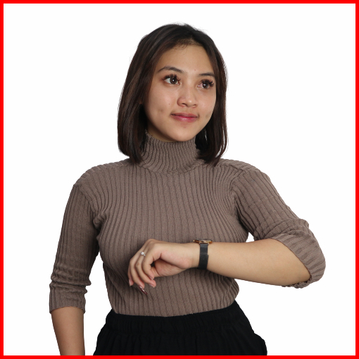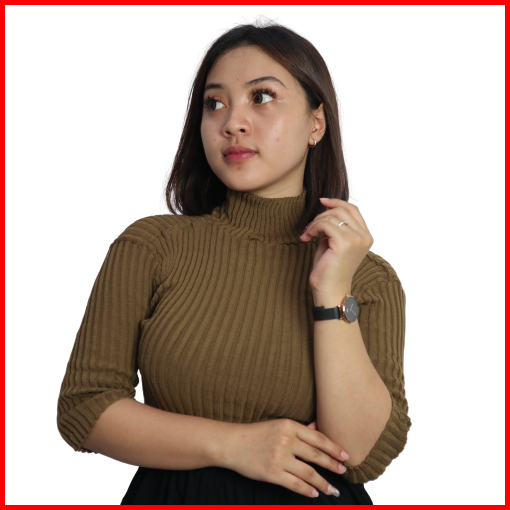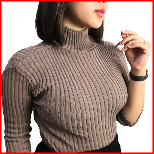 Midi Jumbo Bb 60-90kg Atasan Rajut Kerah Tinggi Wanita Turtle Neck Lengan 3 4