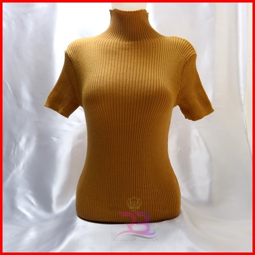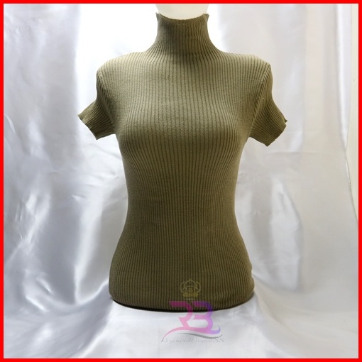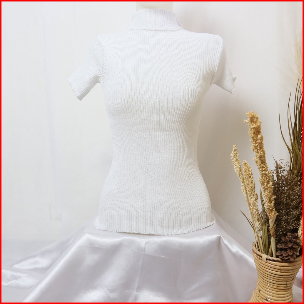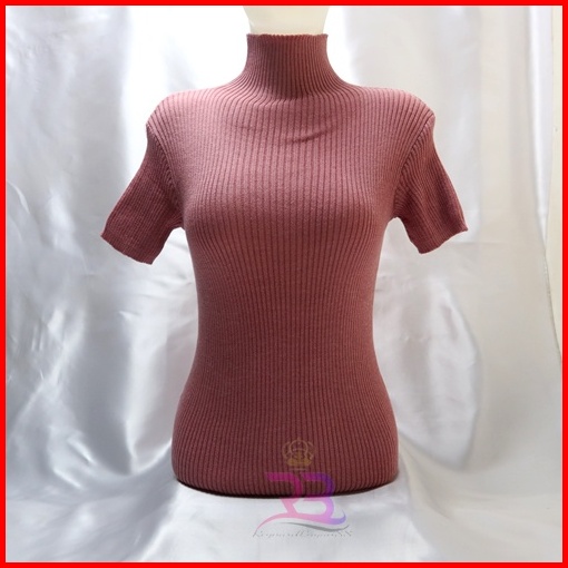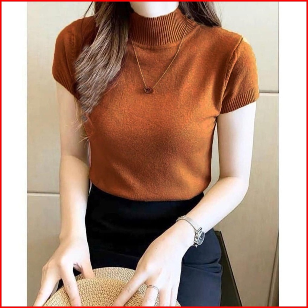 Atasan Rajut Wanita Turtleneck - Kerah Tinggi Lengan Pendek - Turtleneck Knit Premium