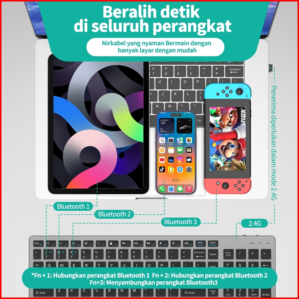 Goojodoq Modus Bluetooth 3 Keyboard 102 Keys Wireless Keyboard Mouse Set For Macbook Laptop Desktop Pc