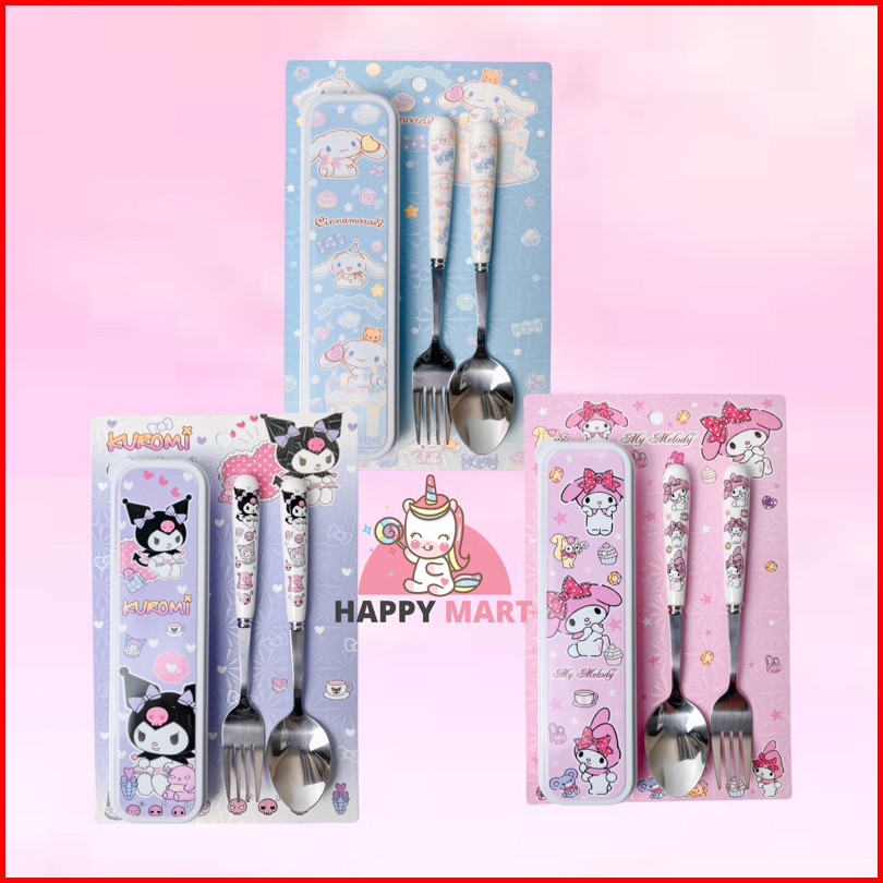 Sendok Samrio Set Ceramic With Box Kuromi Melody Cinnamoroll