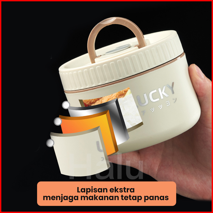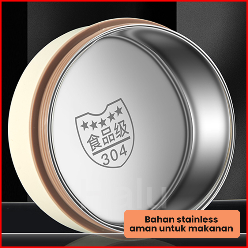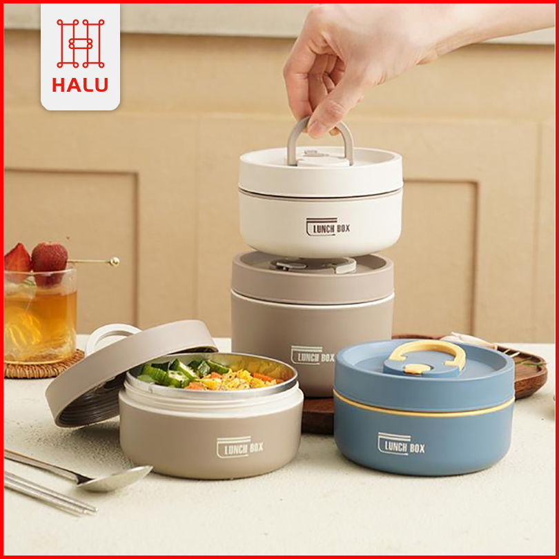 Halu Round Lunch Box Tempat Makan Tahan Panas Kotak Makan Portable Stainless Steel Hmb106