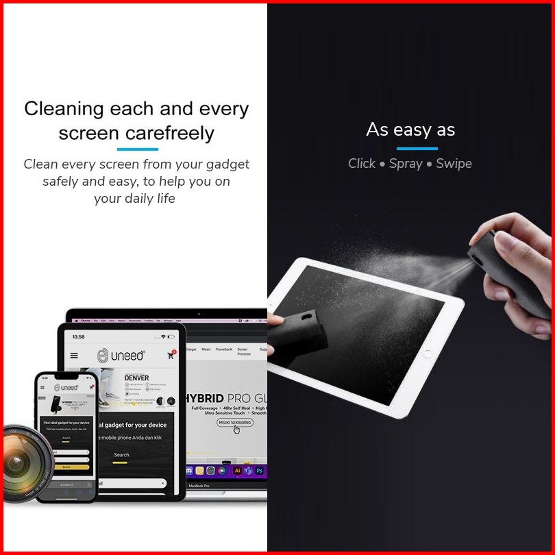 Uneed Lcd Screen Cleaner With Microfiber Pembersih Layar For Smartphone Tablet Laptop - Ucl151
