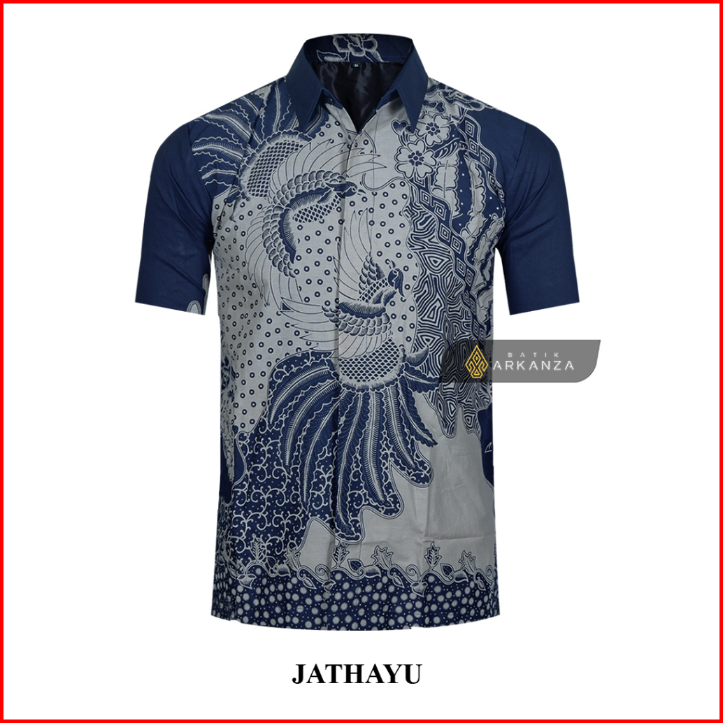 Batik Arkanza Motif Jathayu Hem Atasan Kemeja Baju Batik Pria Cowok Laki Laki Slimfit Full Lapis Furing Lengan Panjang L