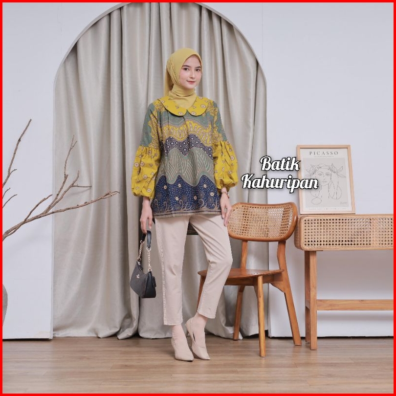 Baju Batik Wanita Lengan Balon Batik Wanita Modern Motif Clara By Batik Kahuripan
