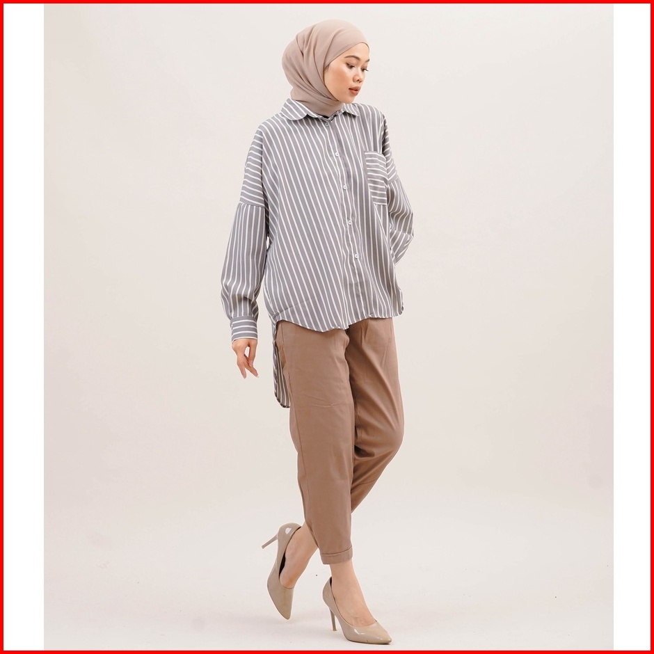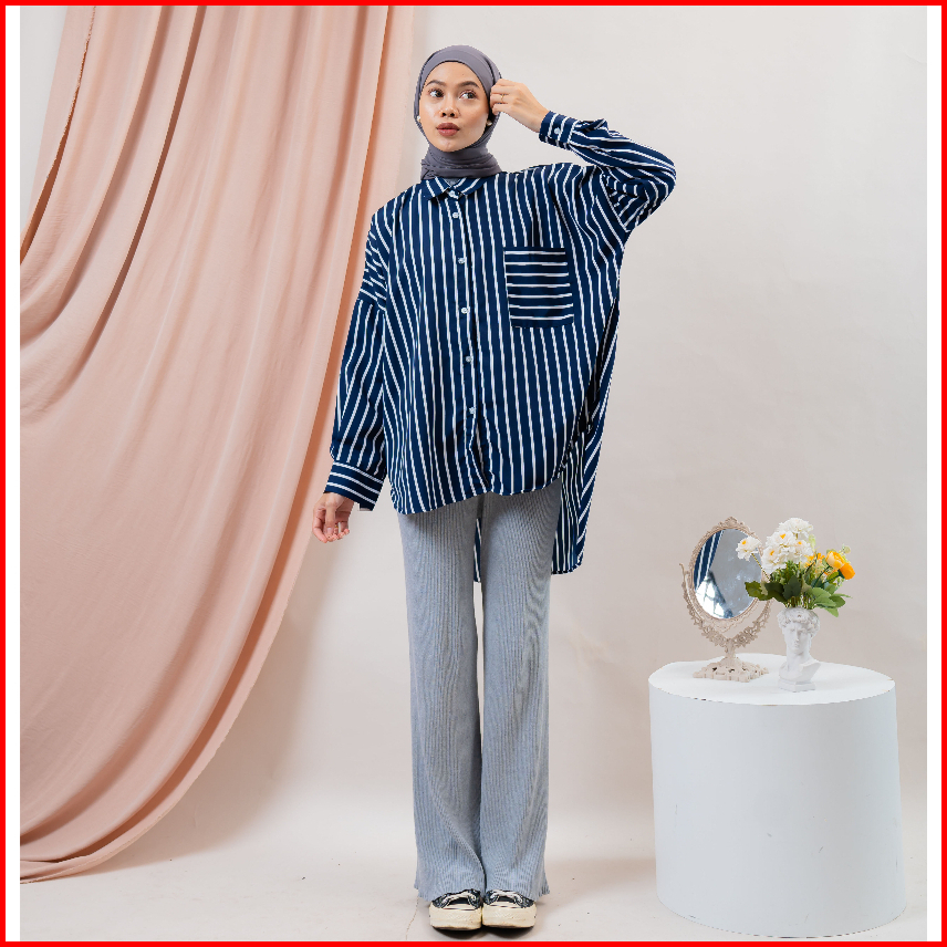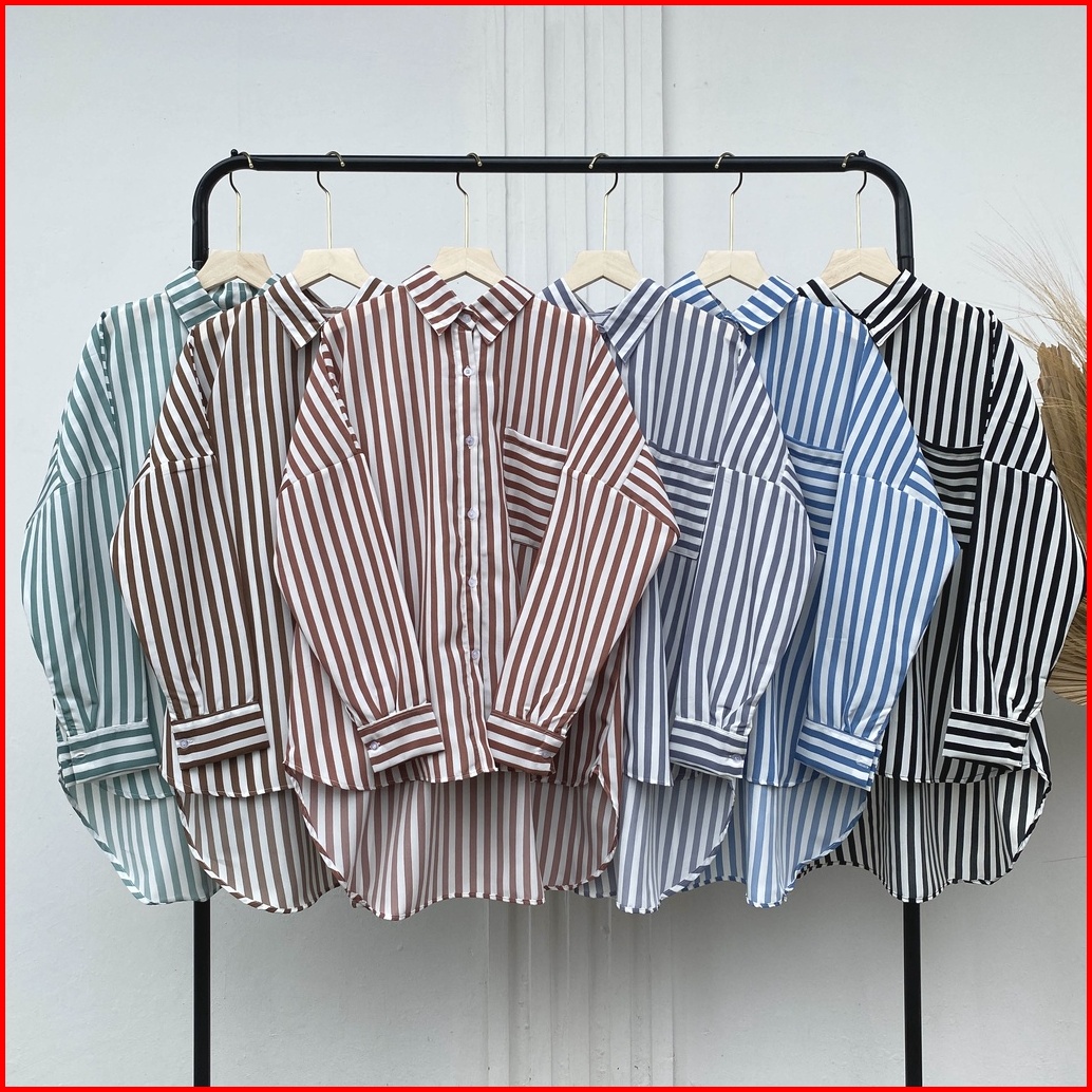 Kemeja Salur Jihyun Wolfis Daily Long Shirt Office Shirt Premium B448 Co