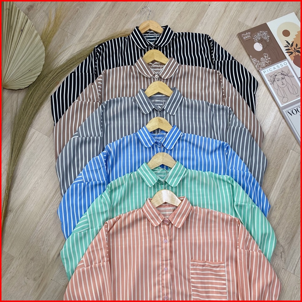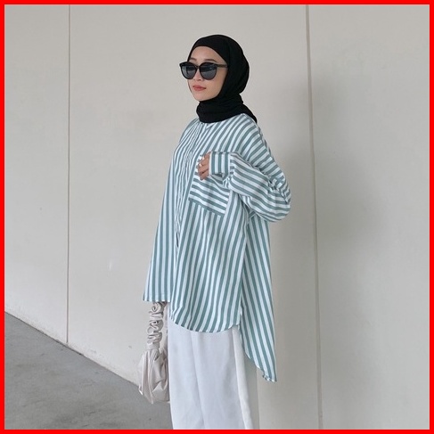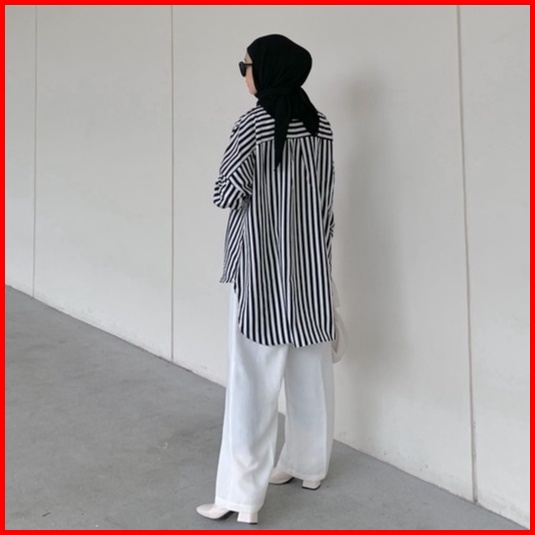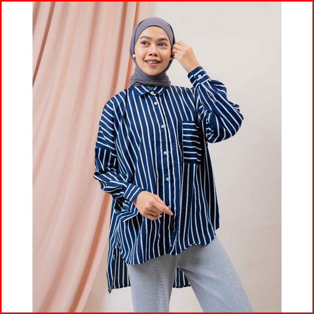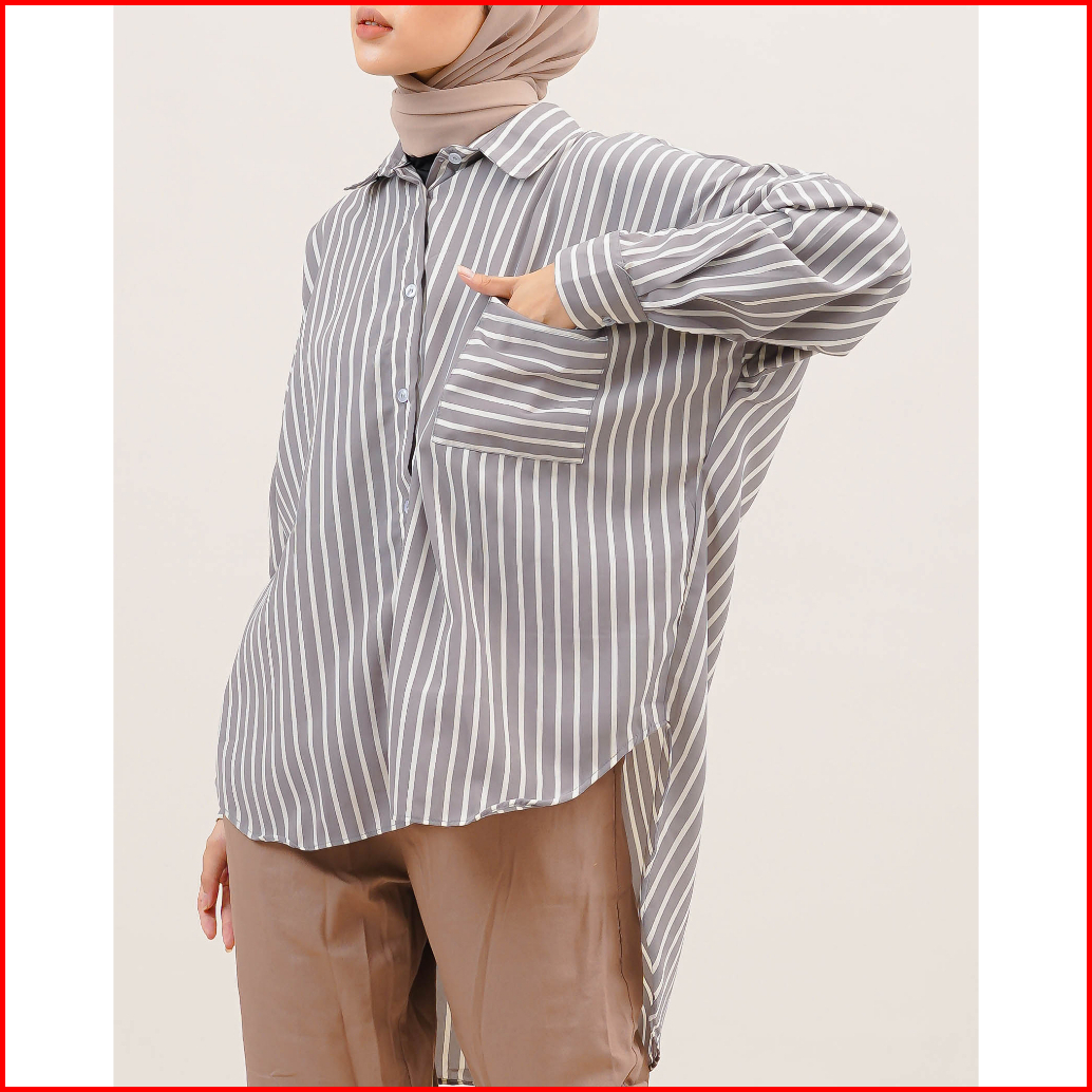 Kemeja Salur Jihyun Wolfis Daily Long Shirt Office Shirt Premium B448 Co