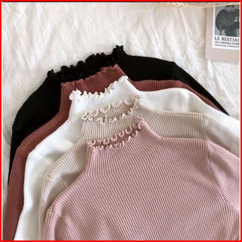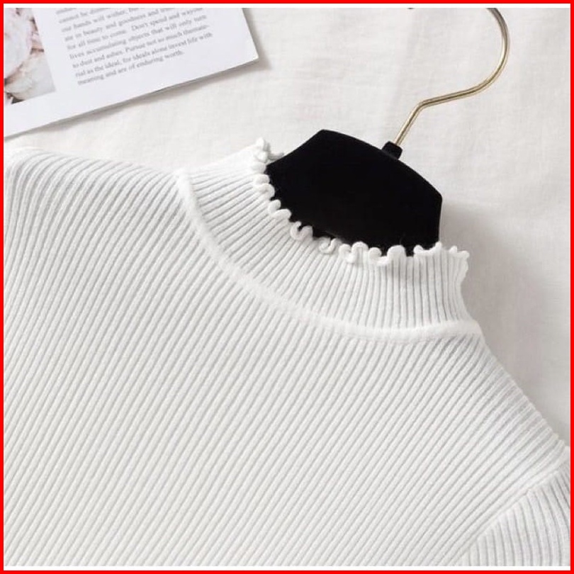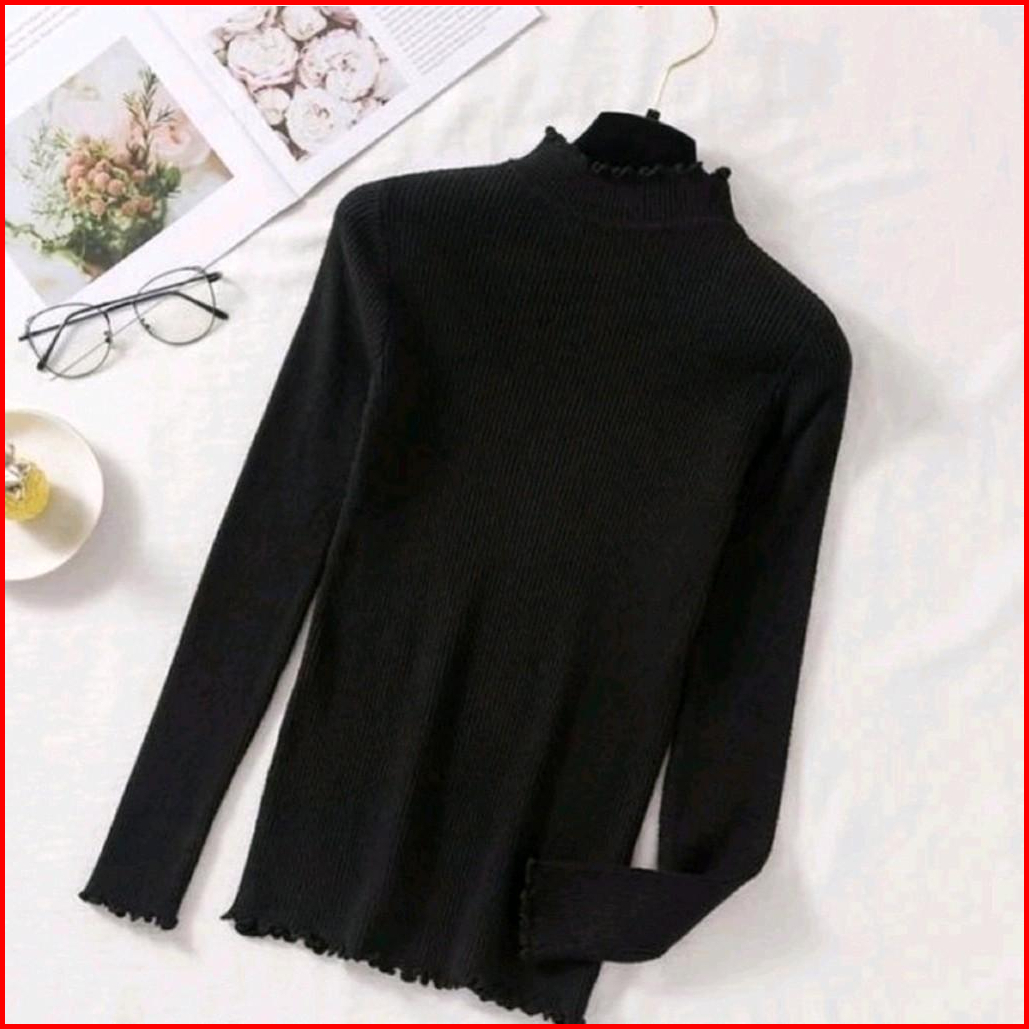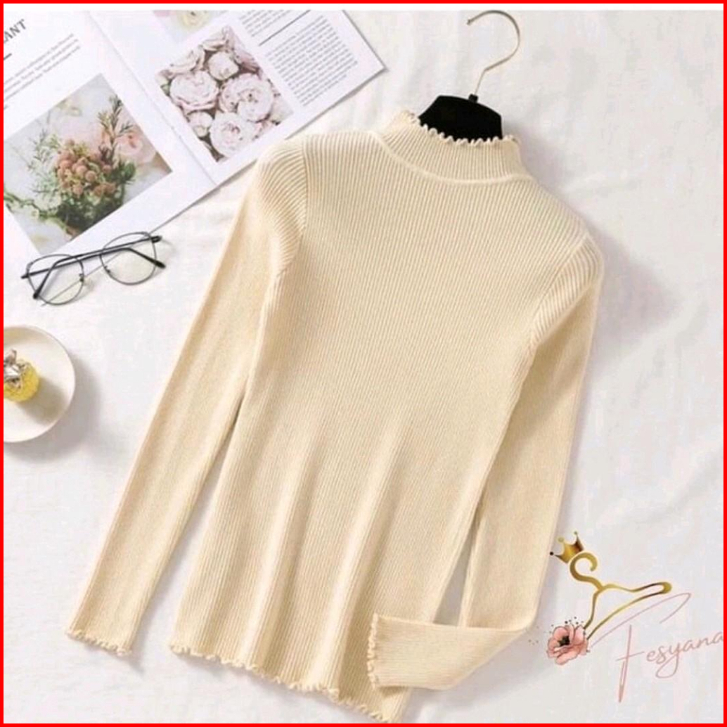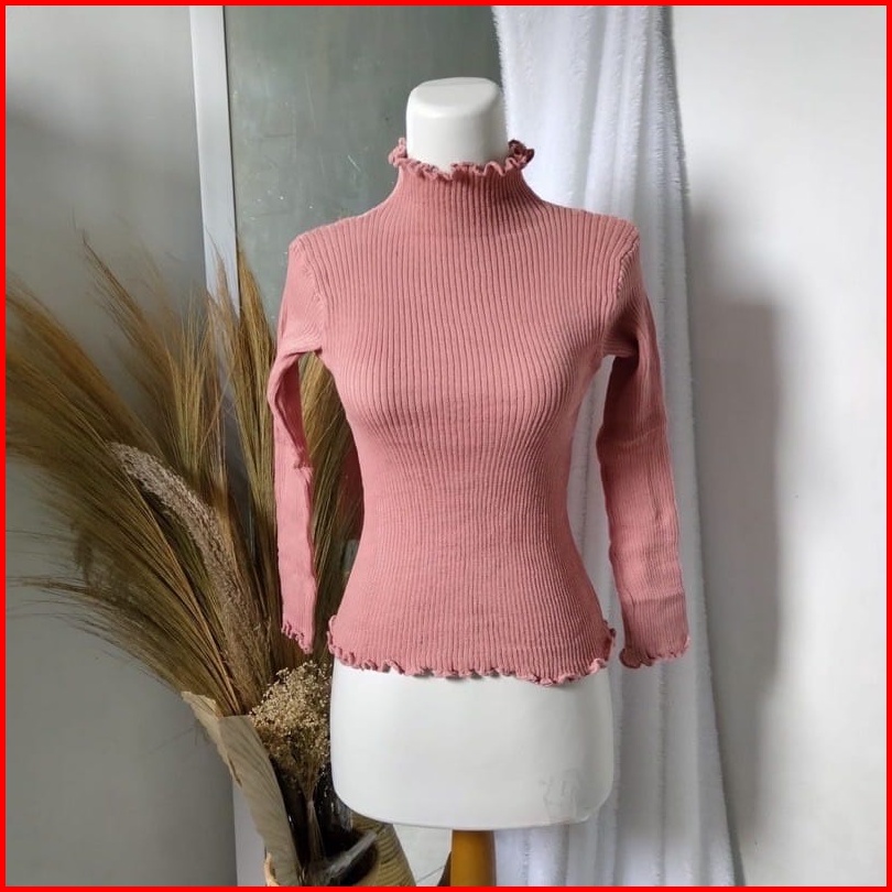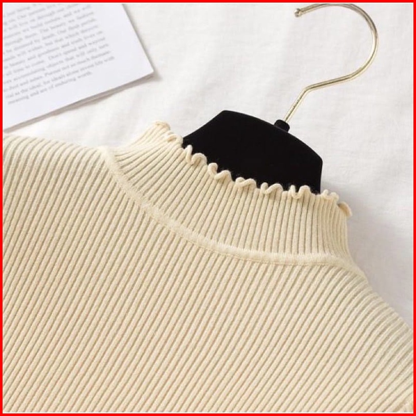 Daisy Curly Inner Knit Swetar Rajut Turtleneck Kekinian