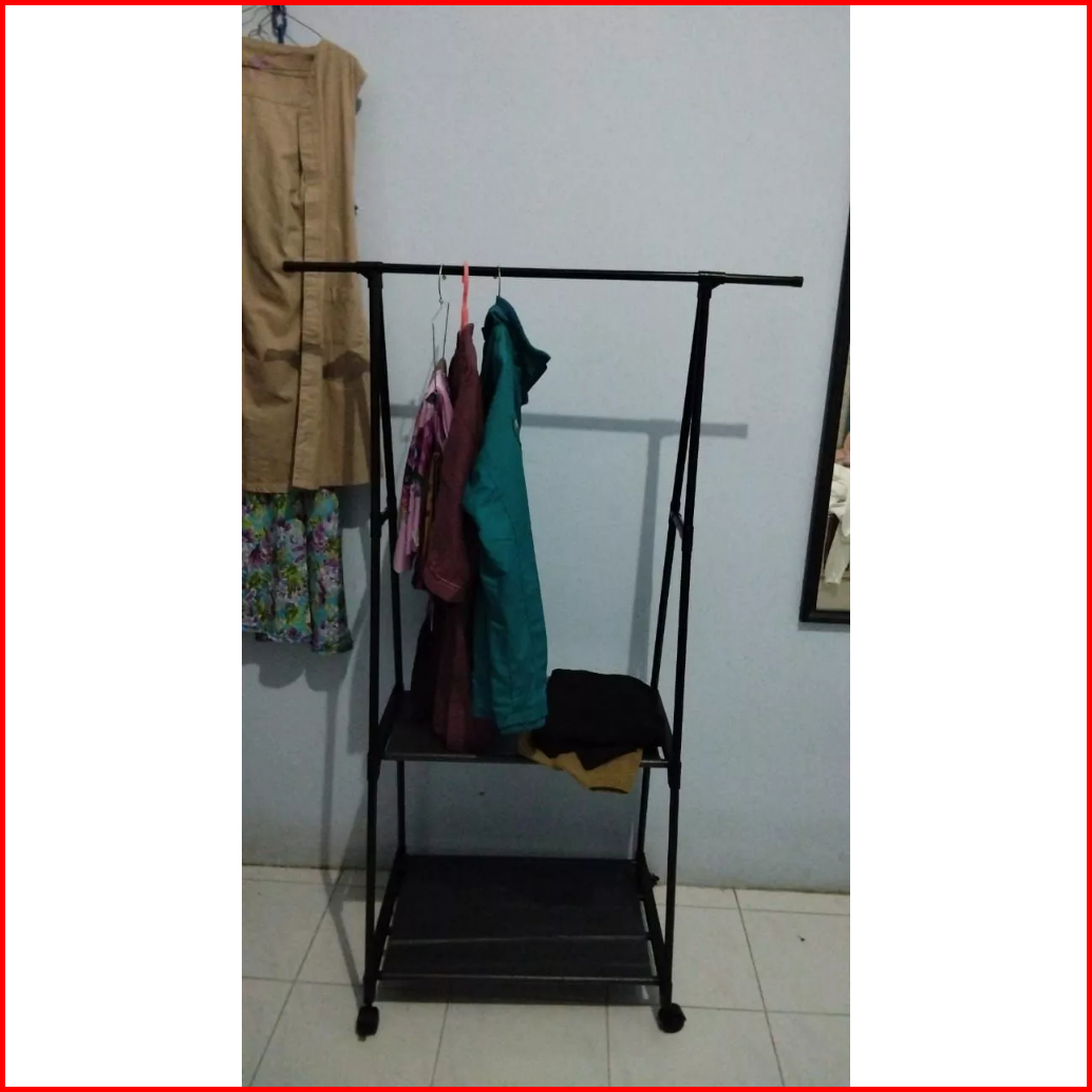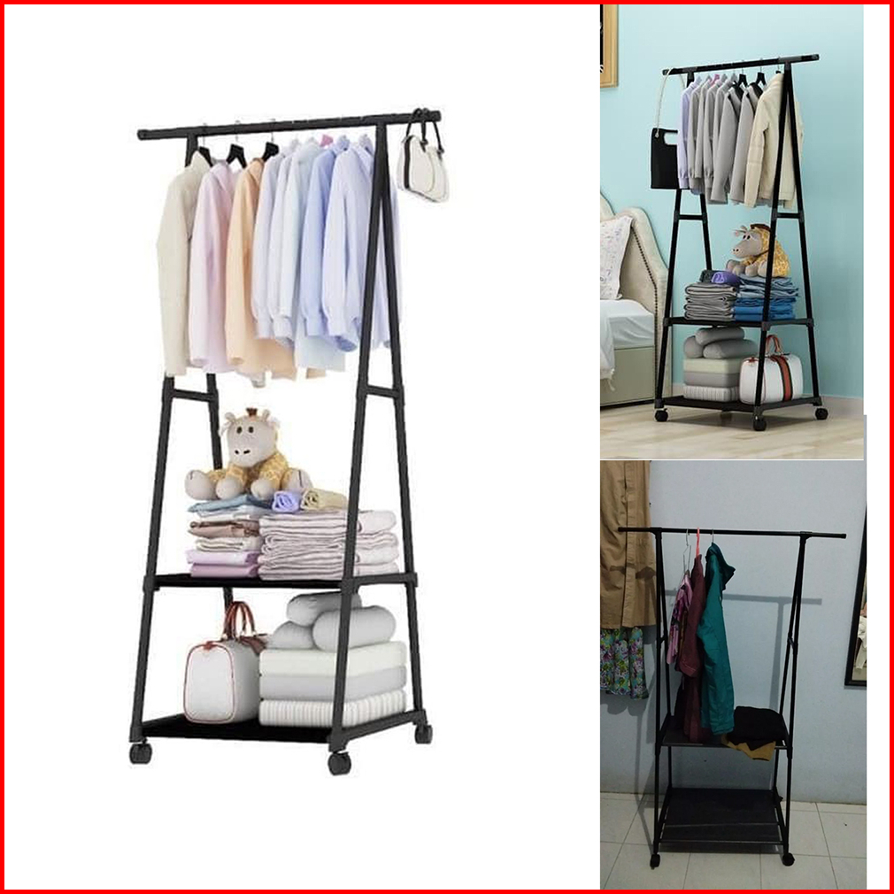 Triangle Stand Hanger Pipa Logam Rak Gantungan Baju Pakaian Jemuran Dengan 4 Roda