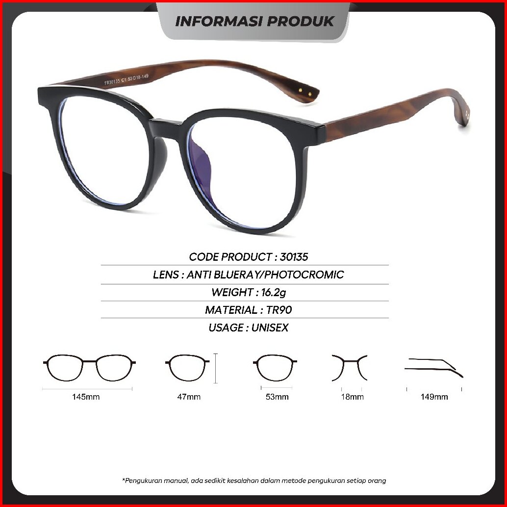 Colore.in Kacamata Photocromic Anti Radiasi Bulat Fashion Wanita Pria Tr90 Metal Anti Uv 30135