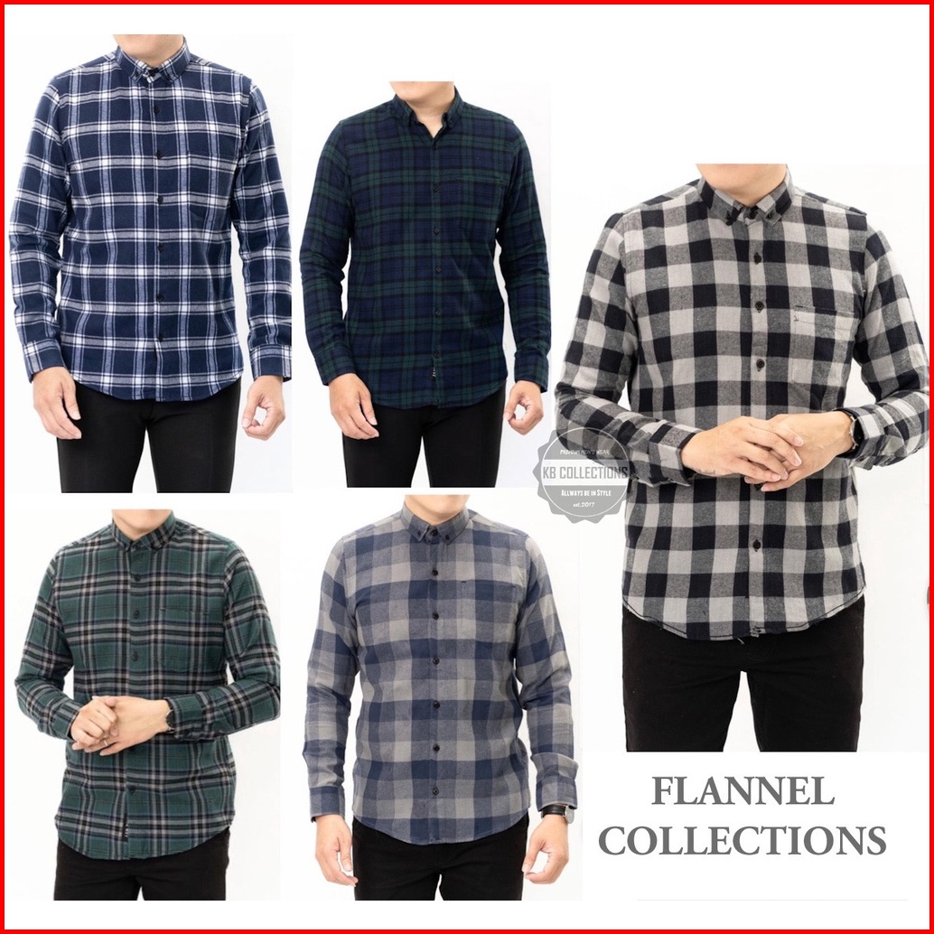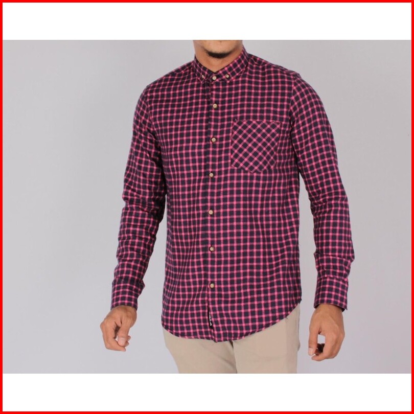 Kemeja Flanel Lengan Panjang Pria Kotak-kotak Premium