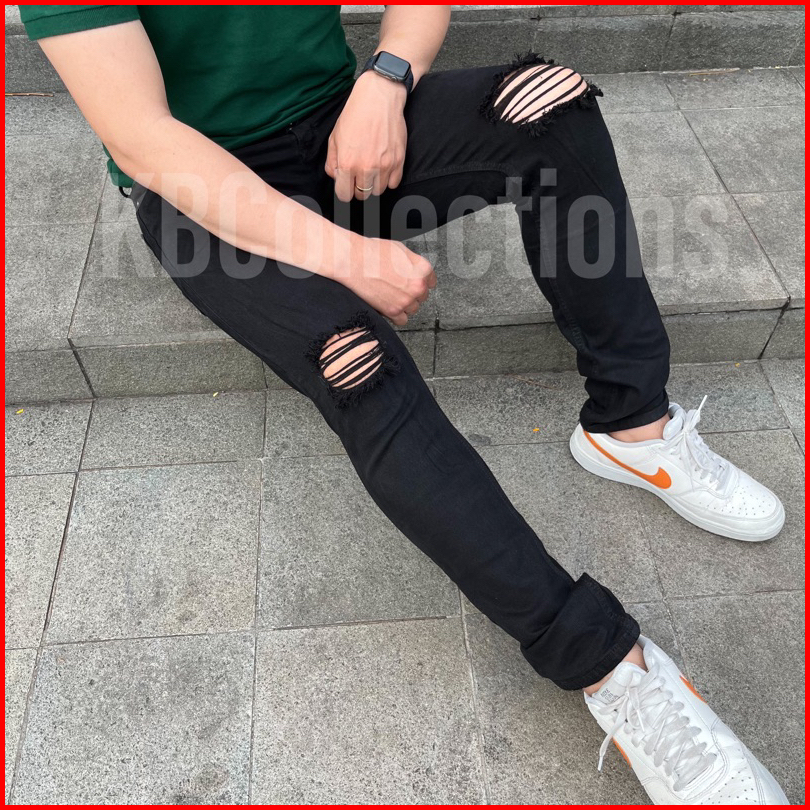 Kbcollections Celana Jeans Hitam Pria Full Black Skinny Jeans J001