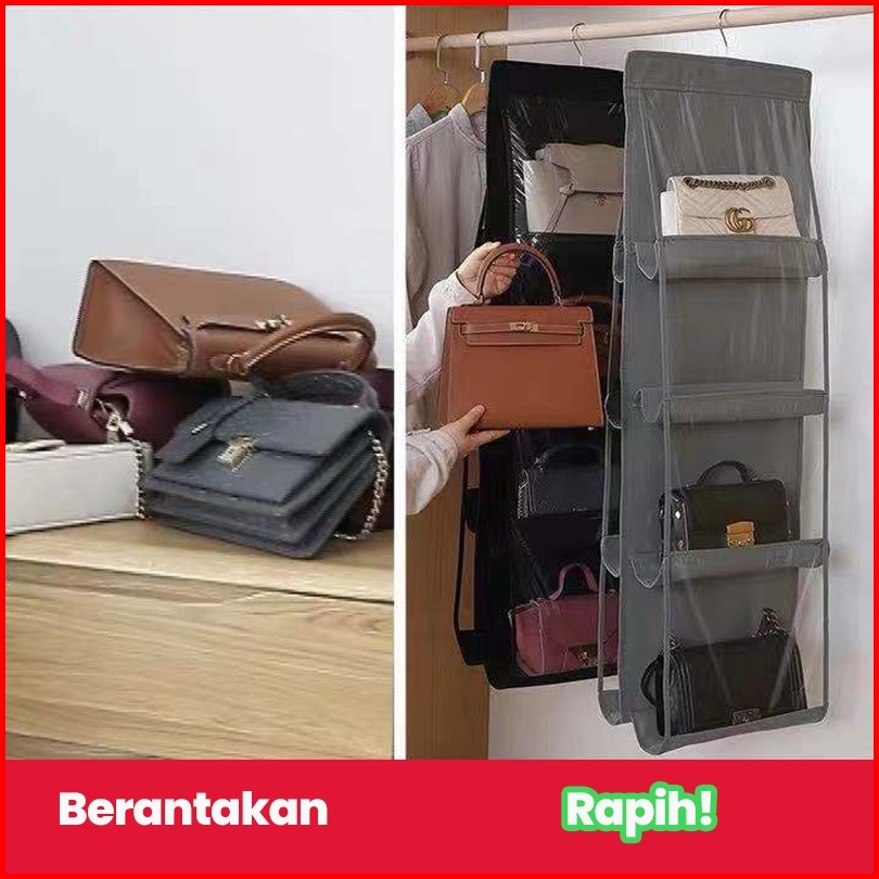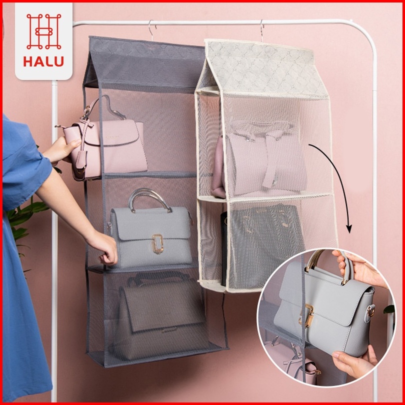 Halu Rak Tas Gantung Bag Organizer Rak Bag Kotak Tempat Penyimpanan Tas Bag Storage Anti Debu Sebaguna Hdk306