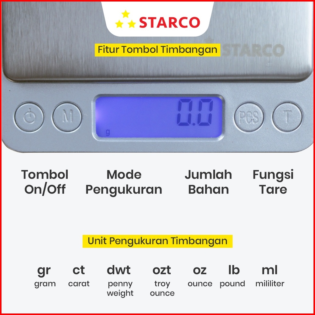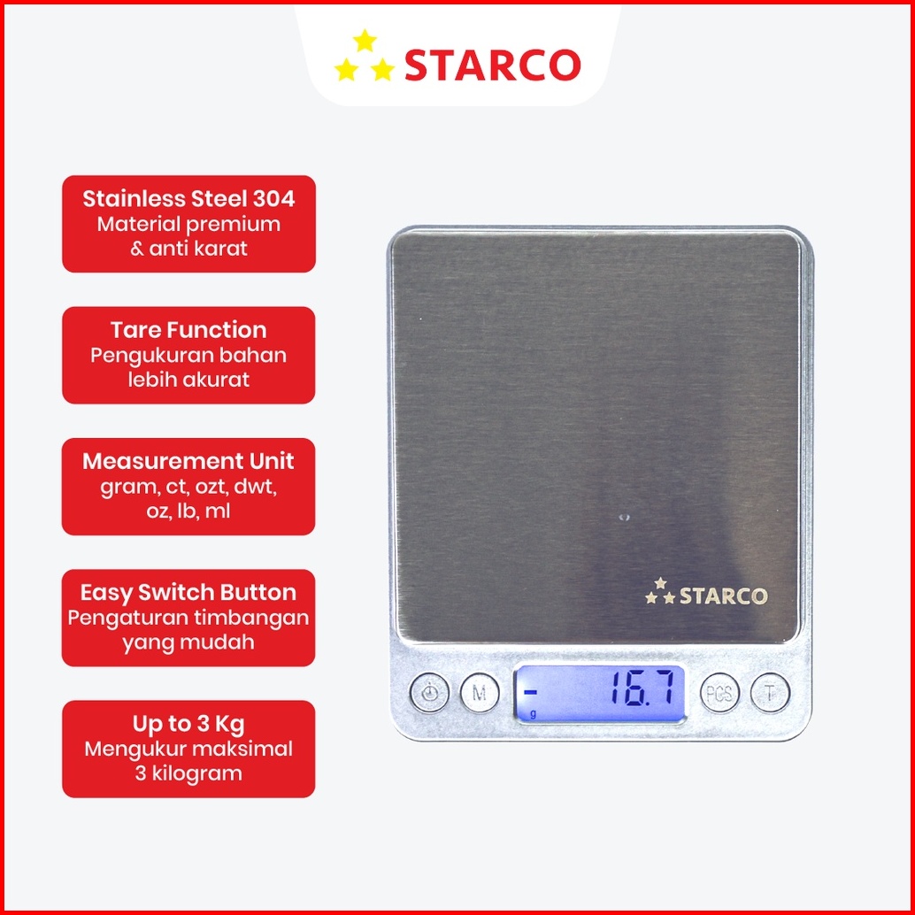 Starco Timbangan Dapur Digital Timbangan Kopi Digital I2000 3000g 3kg