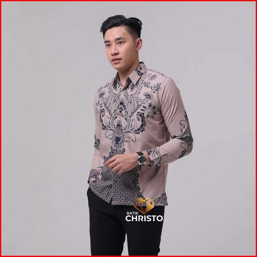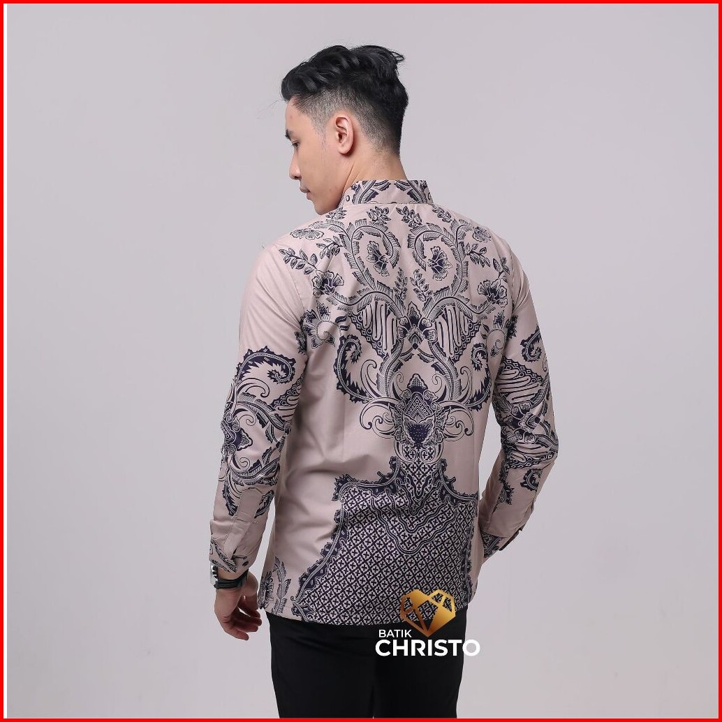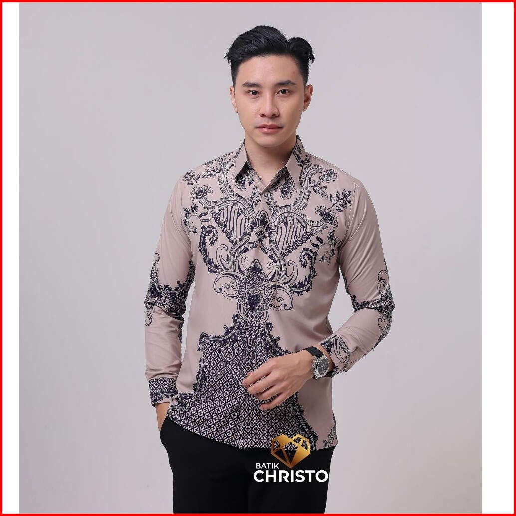 Kemeja Batik Pria Baju Lengan Panjang Slimfit Lapis Furing Batik Christo 1117 Bahan Katun Premium Elegan Motif Formal